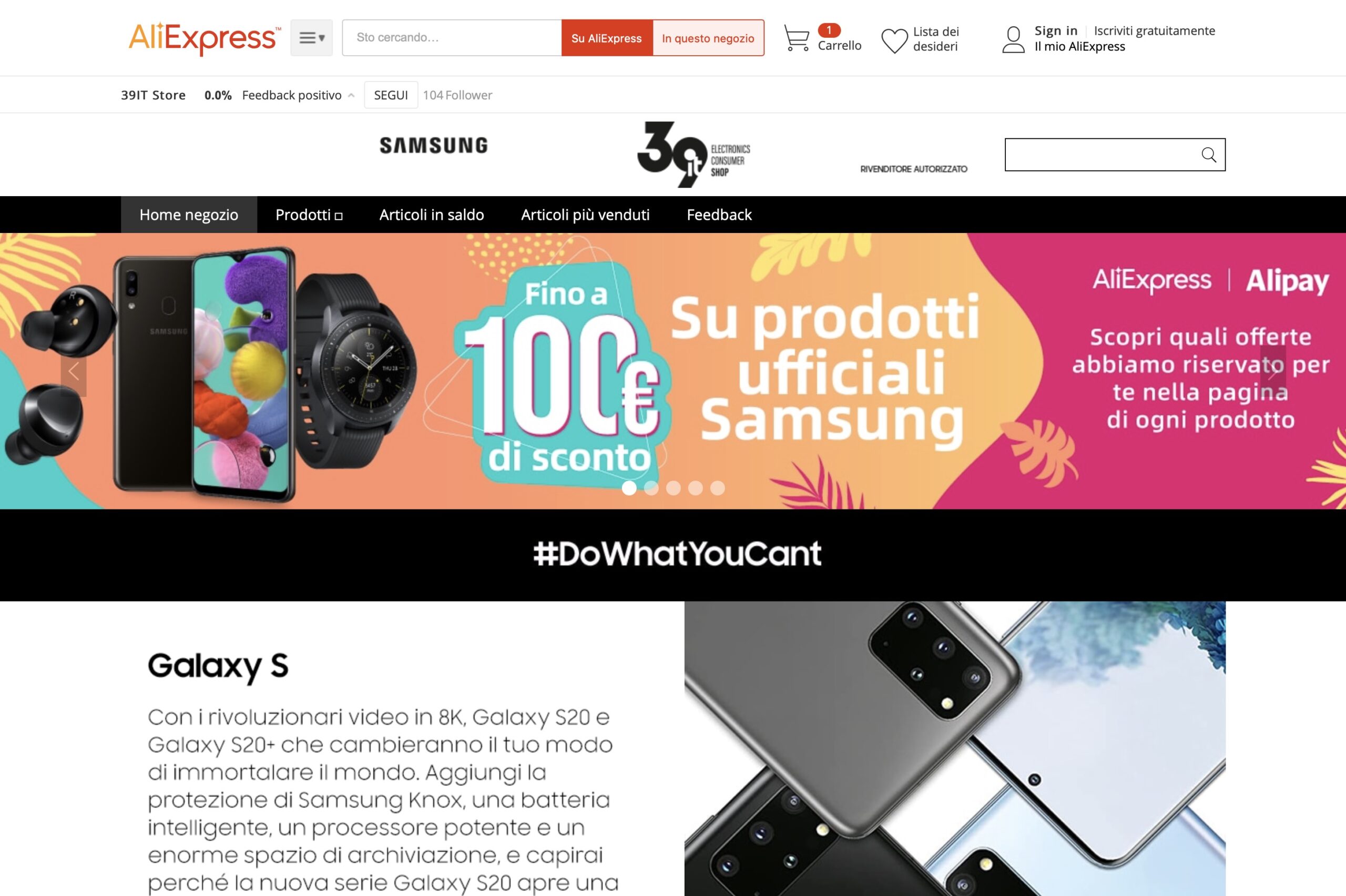 AliExpress continua a consolidarsi anche in Italia. Il rivenditore on line, uno dei principali concorrenti mondiali nel campo dell’e-commerce di realtà come eBay e Amazon ha infatti annunciato l’arrivo dei prodotti ufficiali Samsung sulla propria piattaforma grazie all’apertura dello store di 39it, reseller ufficiale del produttore coreano, dedicato esclusivamente al mercato italiano.