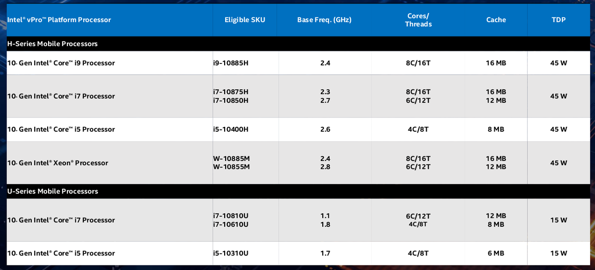 Intel ha presentato una nuova serie di chip con a 14nm, CPU della serie Comet Lake per portatili e desktop, un mix di chip della serie Core e Xeon, tutti etichettati come appartenenti alla piattaforma vPro.