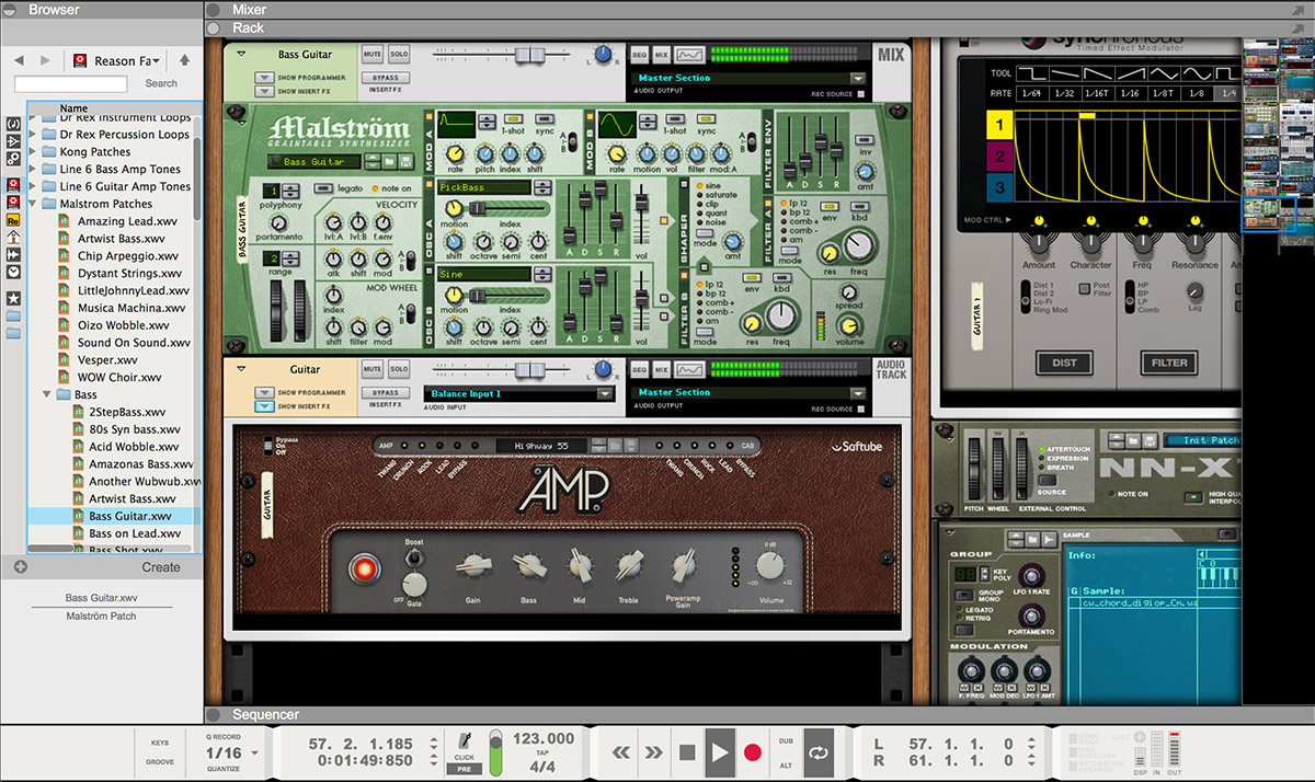 Reason è un un sistema modulare dedicato alla creazione musicale; un unico ambiente include: synth di emulazione analogica, synth granulari, campionatori software, loop player, mixer, moduli effetto, un sequencer, funzion di registrazione audio con emulazione del mixer SSL 9000K.