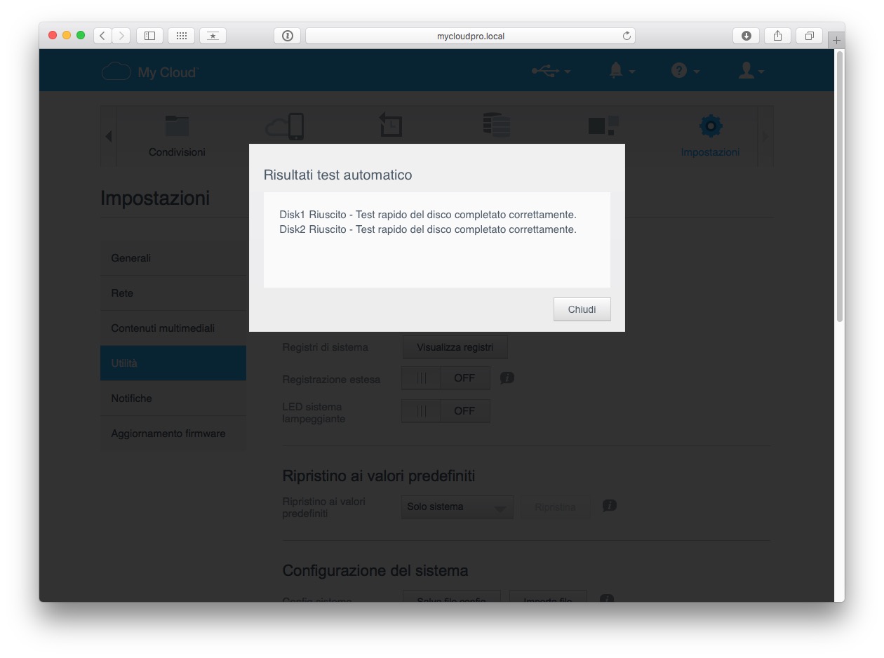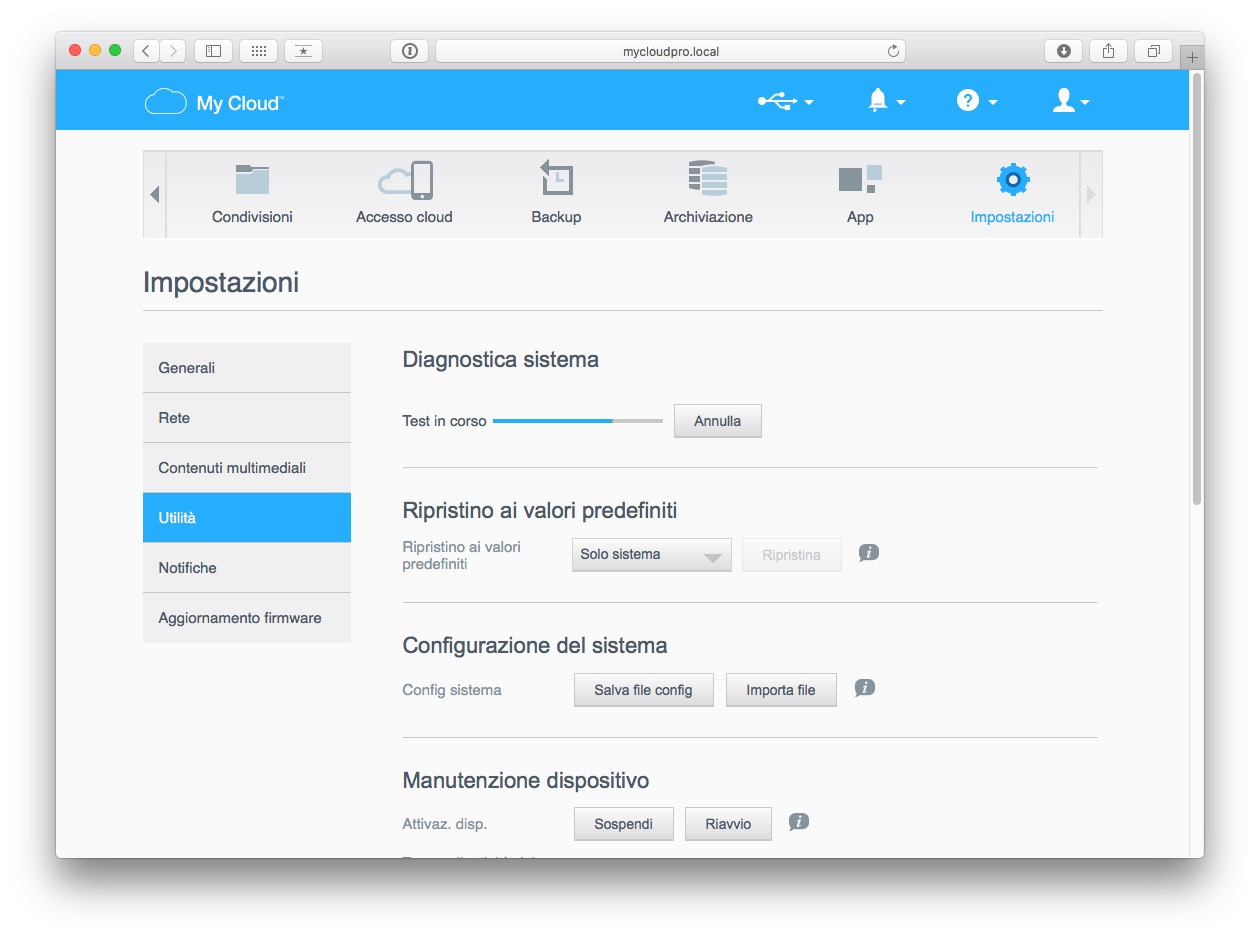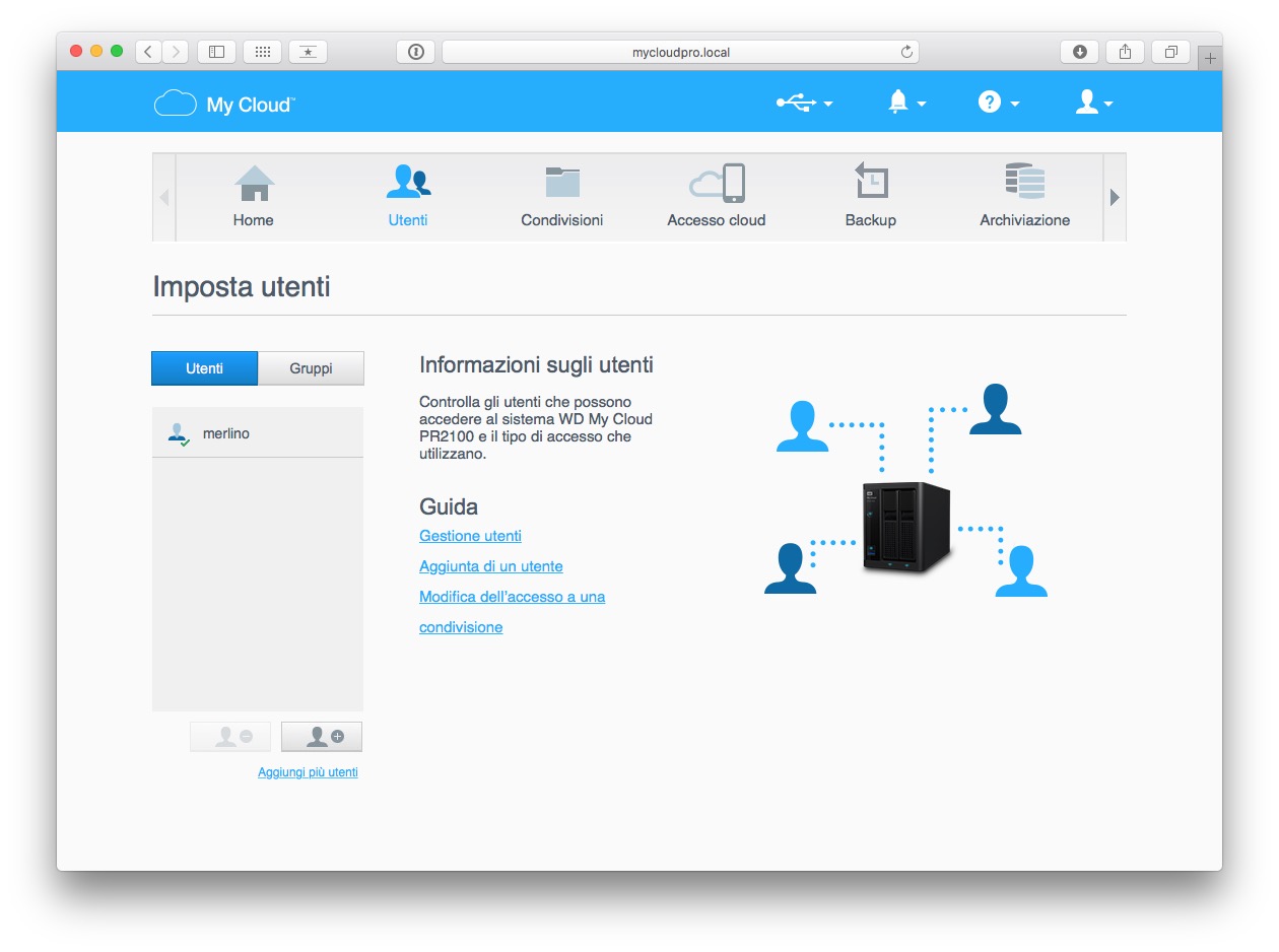 La parte migliore del MyCloud Pro è senza dubbio la parte software: pensato per essere un dispositivo per tutti, la configurazione e mantenimento del disco sono davvero un gioco da ragazzi. Durante il primo collegamento si definiscono i parametri di base, come il primo utente e le funzioni di rete, poi per il resto tutto è gestito tramite browser, compatibile con Bonjour.