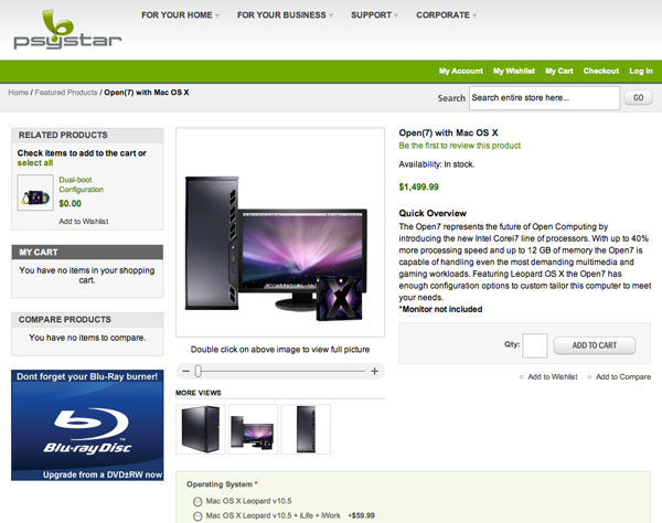 La causa legale e le recenti traversie economiche non sembrano avere scoraggiato Psystar. Il produttore non autorizzato di clini Mac, ha infatti annunciato una nuova potente workstation presentata da Psystar è basata sui recenti processori Xeon Quad-Core Nehalem: si tratta in tutto e per tutto un potente PC assemblato ma funzionante con sistema operativo Mac OS X e proposto al prezzo di un iMac, 1.499 dollari, poco più di 1.000 euro.