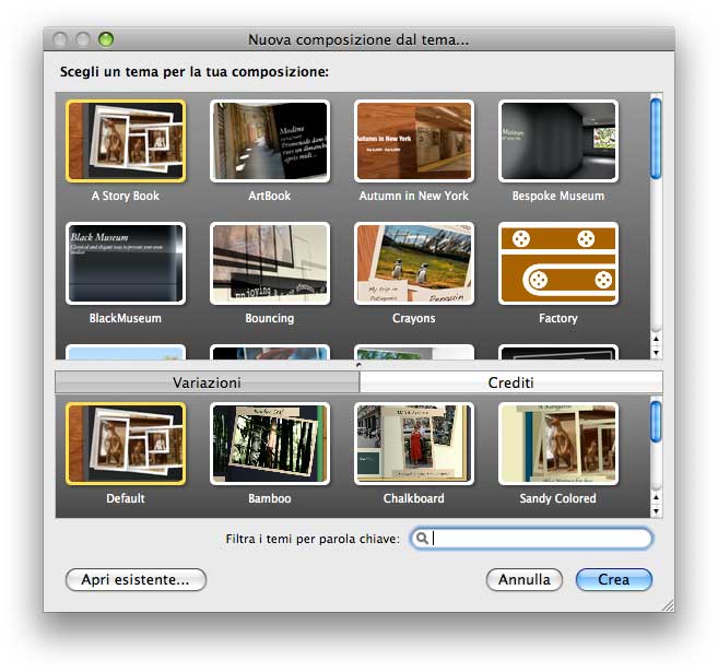 I vari effetti possibili sono, insomma, molto belli e interessanti. Il software arriva con una serie di “temi” ben curati ed estensibili: basterà effettuare il drag&drop di foto, filmati e musiche per iniziare subito a creare presentazioni accattivanti e professionali.