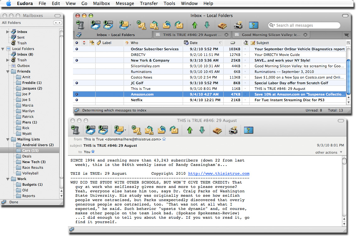 Dopo cinque anni di tira e molla, Qualcomm ha concesso i sorgenti al Computer History Museum. A chi non sa di cosa stiamo parlando, ricordiamo che Eudora negli anni ’90 è stato uno dei più popolari software per la gestione della posta elettronica. Per l’epoca era piuttosto ricco di funzionalità, veloce e minimalista. L’applicazione fu sviluppata nel 1988 su Macintosh da Steve Dorner che impiegò un po’ più di un anno per la prima versione definitiva, scritta usando circa 50.000 linee di codice in C ed eseguibile sul Mac.