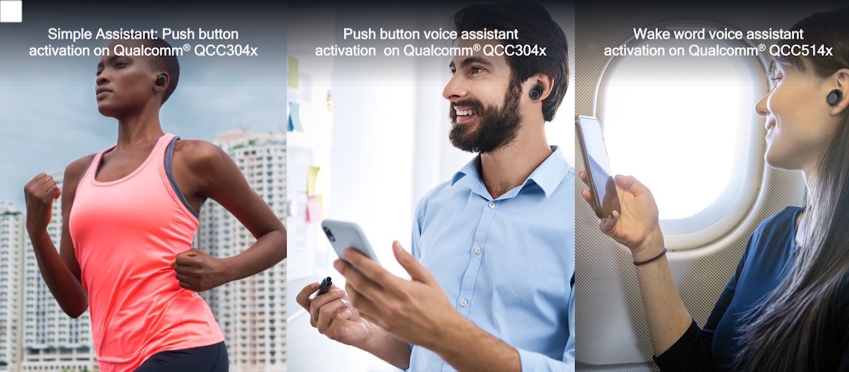 La differenza tra i due SoC sta nel modo in cui gestiscono il supporto vocale: il modello top QCC514X, ha il supporto per la Voce “Always on” grazie al quale si accede ad una parola di attivazione, il modello base-intermedio QCC304x ha l’attivazione vocale tramite pulsante, per offrire ai costruttori di terze parti le funzionalità di assistente vocale su dispositivi a basso costo. Questo potrebbe portare l’uso degli assistenti vocali disponibili su una più vasta gamma di auricolari.