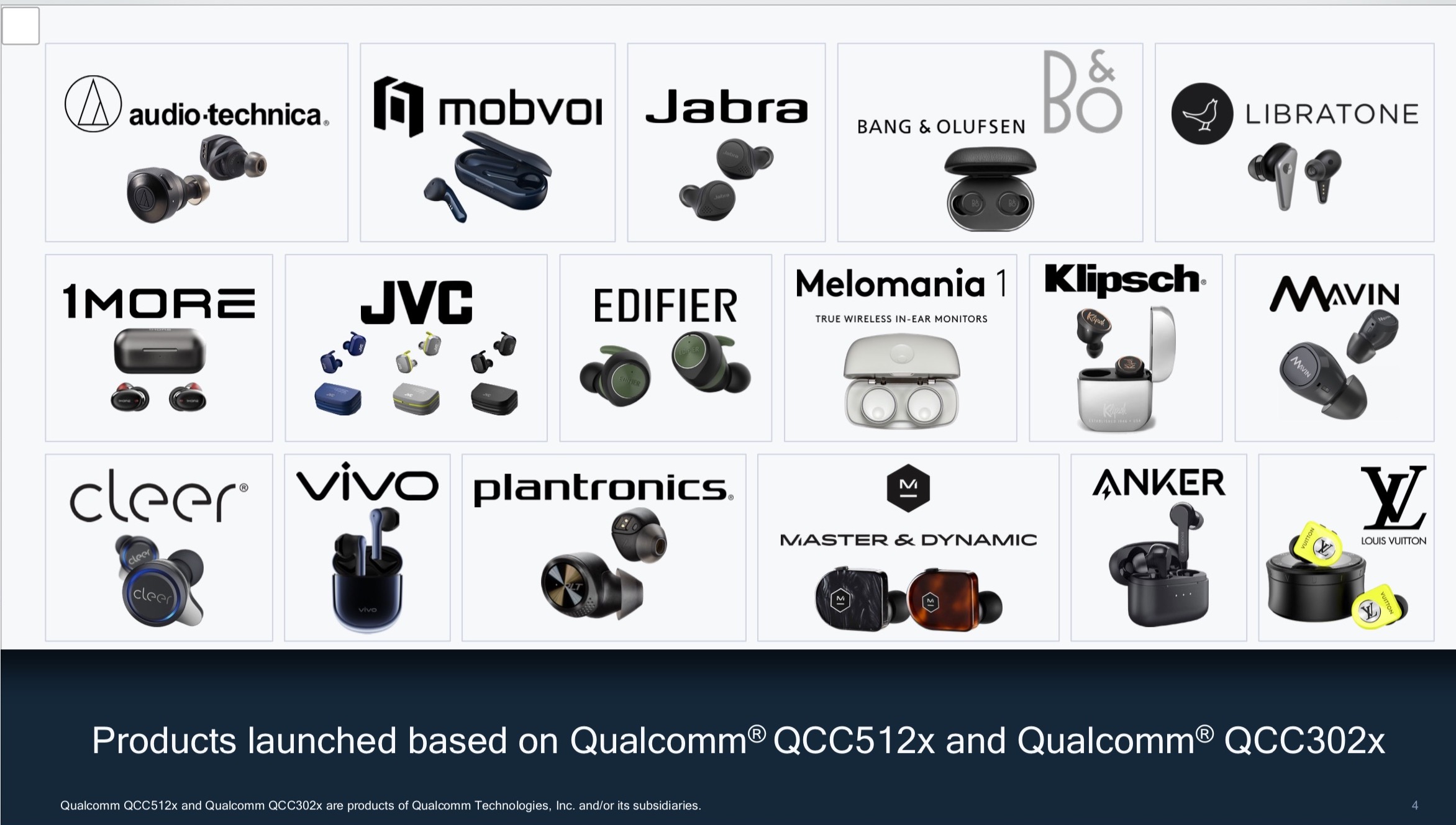 Qui sotto vedere una panoramica dei tanti marchi che hanno utilizzato, abbinandoli a trasduttori e chassis di vario tipo, i chip di Qualcomm della scorsa generazione.