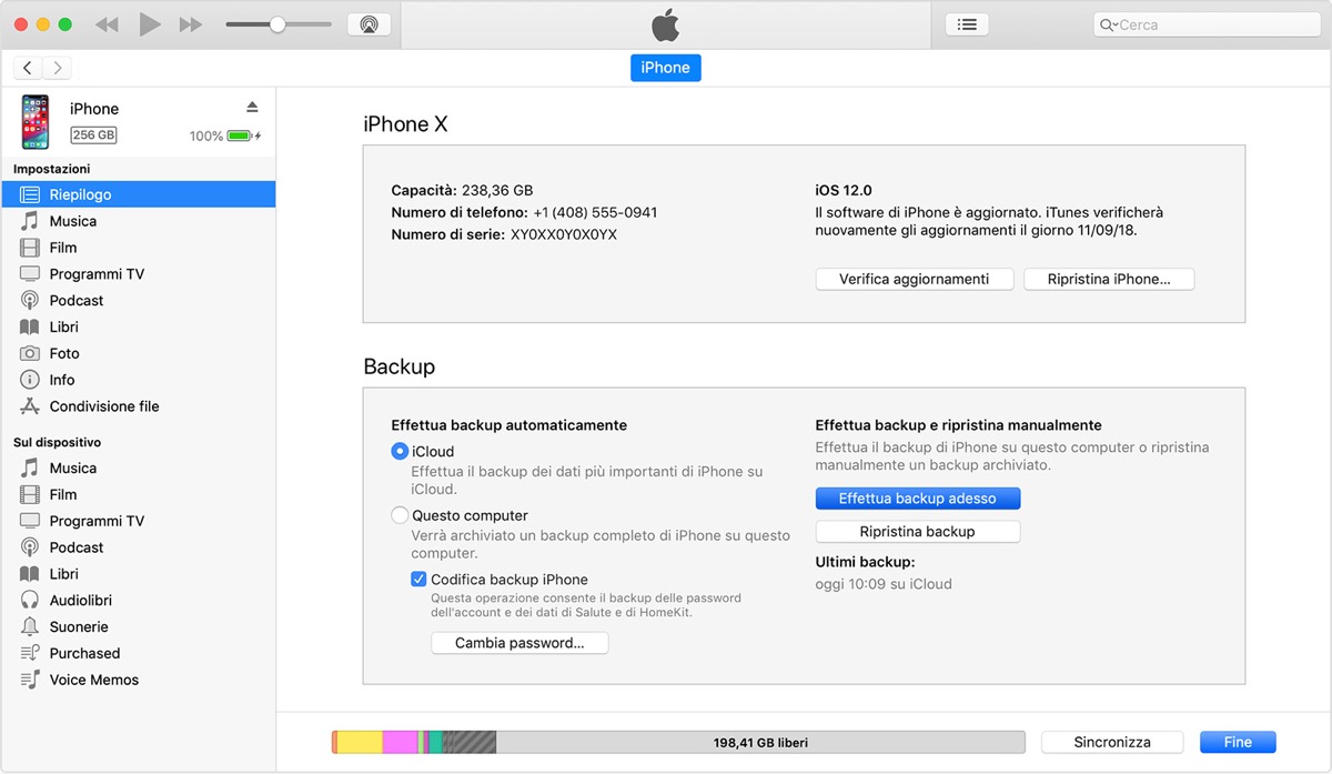 - Dati del portachiavi e delle app Attività e Salute (per il backup di questi contenuti si dovrà usare il backup codificato in iTunes)