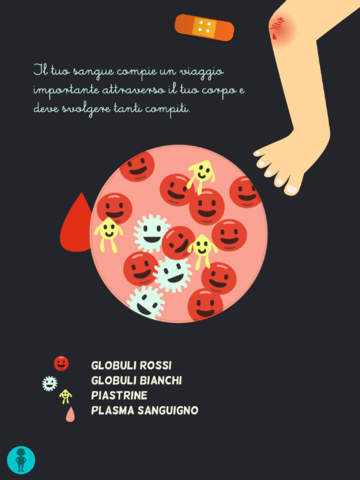 In Questo è il mio corpo l’interazione è prevista in ogni sezione ed è la vera protagonista: poca la parola scritta (che comunque può essere letta da iPad) ogni immagine può essere tirata, trascinata, scossa, toccata. In tutto 100 illustrazioni, divise nelle sezioni “Ogni persona è unica”, “La mia pelle mi protegge”, “I 5 sensi”, “Ho fame! – L’apparato digerente”, “Respira a fondo… – L’apparato respiratorio”, “Pulsazioni cardiache – La circolazione sanguigna”, “I miei muscoli – Il movimento è salutare”, “I miei nervi – Il sistema nervoso”, “Il mio scheletro – Perché abbiamo bisogno delle articolazioni?”. E se avete a che fare con un carattere “sapientino” che non si accontenta, l’app mette a disposizione delle sezioni aggiuntive con degli approfondimenti. Come riporta l’indicazione dello Store, Questo è il mio corpo è già fruibile da bambini dai quattro anni in su, ma probabilmente può raccontare meglio la macchina meravigliosa del nostro corpo a bambini più grandi, dalla terza elementare in poi.