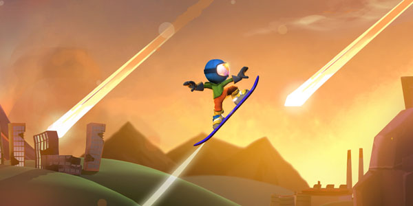 Come suggerisce lo stesso titolo, l’utente guiderà un rider in piedi su uno snowboard, che si troverà a viaggiare all’interno di un contesto post apocalittico. Il personaggio correrà automaticamente da sinistra verso destra, e al giocatore rimarrà soltanto di toccare lo schermo per eseguire slanci ad ogni collina. Proprio come in Tiny Wings, infatti, mantenendo la pressione del dito sul display si farà precipitare in terra il rider, che potrà sfruttare le colline per acquisire sempre maggiore velocità e compiere trick spettacolari a mezz’aria. Le acrobazie possono essere eseguite a suon di slide: in alto, in basso, a sinistra, e così via. Ad ogni acrobazia, naturalmente, l’utente acquisterà punteggio, riuscendo altresì a sbloccare gli obiettivi imposti dal prodotto. Lo scopo ultimo di ogni corsa è quello di rimanere in pista il più a lungo possibile, cercando di evitare il contatto con la lava incandescente che insegue il protagonista alle spalle.