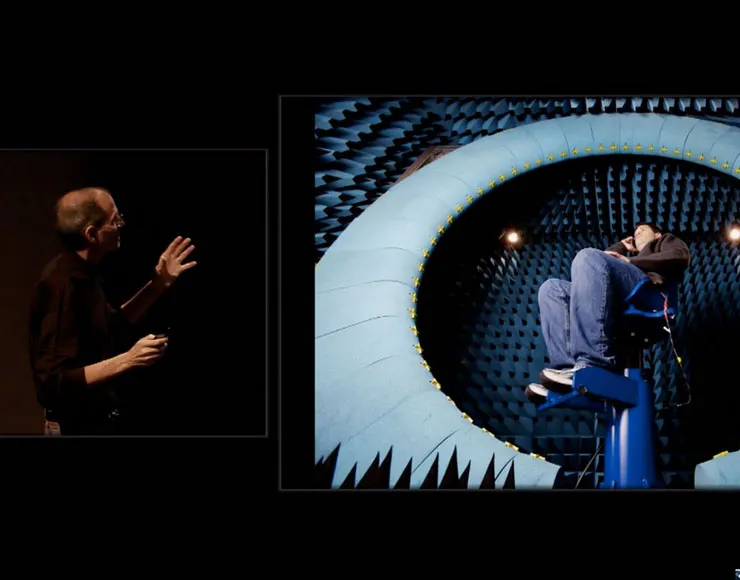 All’epoca dell’iPhone 4, Apple portò un un ristretto gruppo di giornalisti all’interno dei suoi laboratori dove testa l’efficienza del wireless di dispositivi da tasca e computer. A questi fu consentito di vedere le le camere anecoiche dove i dispositivi Apple vengono testati per misurare le prestazioni e l’efficienza dei loro apparati wireless.