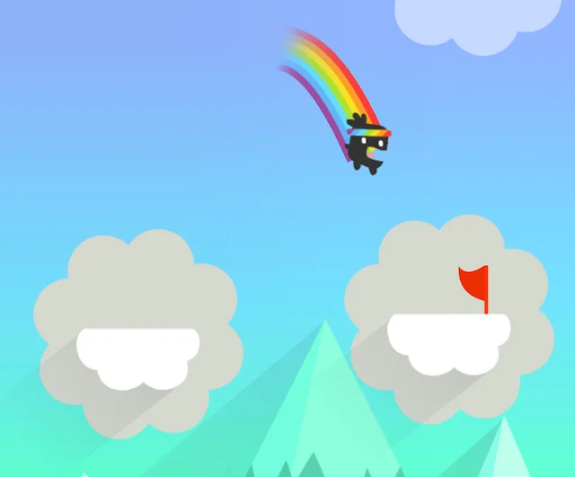 Le meccaniche di gioco sono estremamente intuitive e richiamano per certi versi quelle tipiche di Angry Birds. Ed infatti, la piccola creaturina nera a schermo, viene catapultata da una nuvola all’altra per il tramite di semplici slide, come se si trattasse di una fionda. Insomma, le meccaniche di lancio sono identiche a quelle di Angry Birds, ma il lancio non è finalizzato a distruggere le strutture a schermo, bensì solo ad atterrare su una nuvola. Ad ogni salto riuscito, si cambierà livello, con un notevole incremento di difficoltà. Ben presto, infatti, appariranno sulla scena ostacoli ed elementi di disturbo, e le nuvole da raggiungere saranno sempre più distanti. Il salto, insomma, diventa sempre più difficoltoso. Se questa meccanica semplice, in realtà, non dispiace affatto, quello su cui si potrebbe recriminare è la mancanza di sbloccabili. Le monetine che si raccolgono nei livelli proposti, infatti, hanno la sola funzione di acquistare vite aggiuntive, ma non vengono in alcun modo impegnate per sbloccare avatar aggiuntivi o abilità di alcun genere. Rainbow Rider, allora, sarebbe potuto risultare più interessante, ad esempio, predisponendo una vasta gamma di avatar da sbloccare, come avviene in titolo del calibro di Crossy Road.