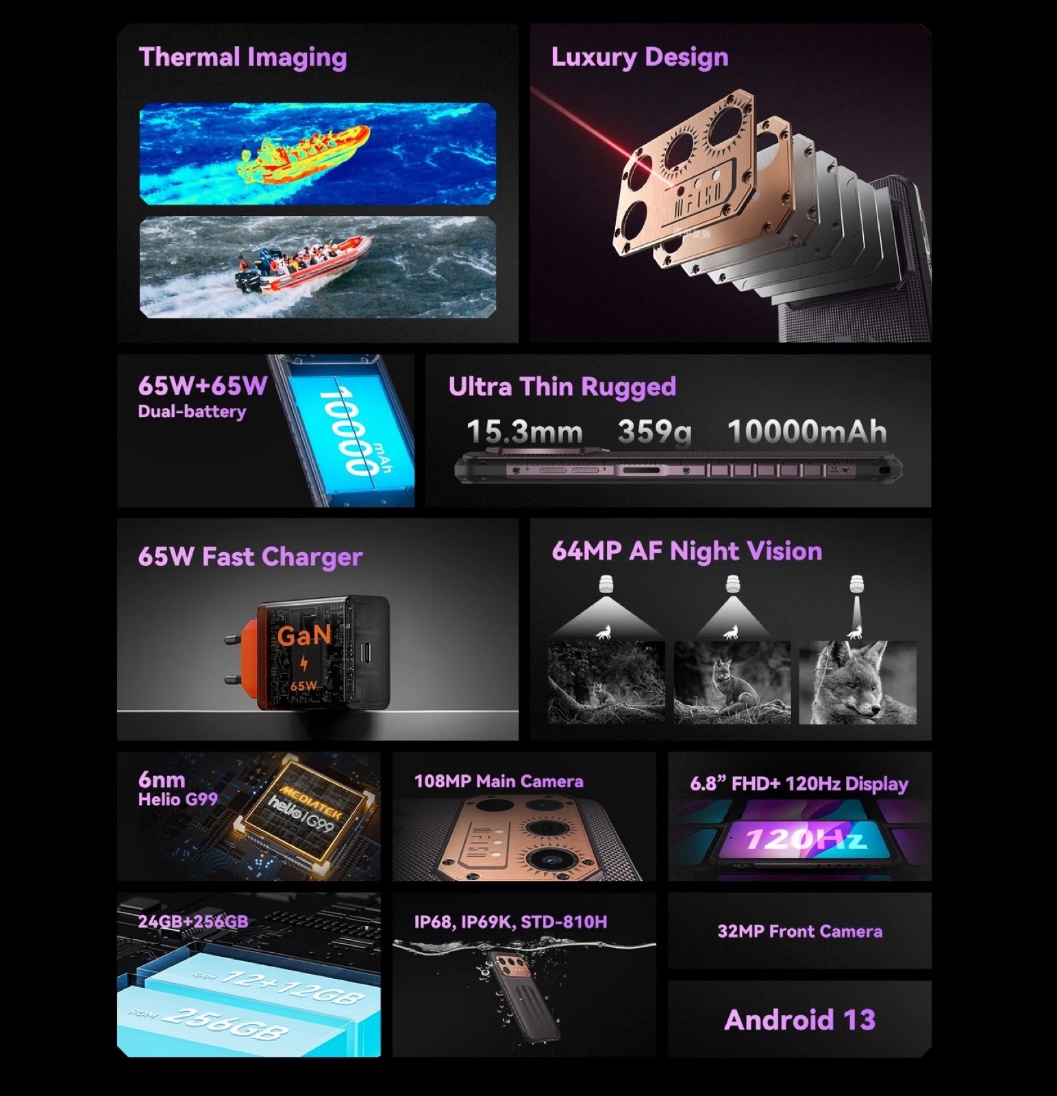 Per quanto riguarda la connettività, naviga in internet in rete 4G, mentre dal lato multimedialità abbiamo una fotocamera posteriore da 108 MP e una anteriore da 32 MP. C’è anche una fotocamera termica, molto utile per vedere anche di notte o individuare rotture e punti di calore al di là delle pareti, risultando così utile anche per ispezioni idrauliche e simili.