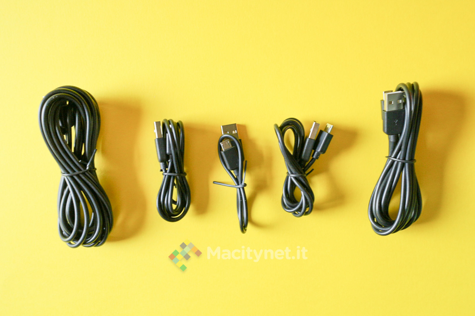 Ogni prodotto viene sempre venduto insieme ad un cavo microUSB ma qualche volta si potrebbe avere l’esigenza di averne uno più lungo magari per continuare ad utilizzare il dispositivo a distanze maggiori mentre è collegato alla presa elettrica, o viceversa si potrebbe desiderare un cavetto più corto da lasciare in macchina o nello zaino. A risolvere il problema, con una spesa davvero irrisoria, ci pensa il kit RP-LC04 di RavPower che, per soli 11,99 euro, comprende 5 diversi cavi microUSB che si adattano a tutte le situazioni più comuni.