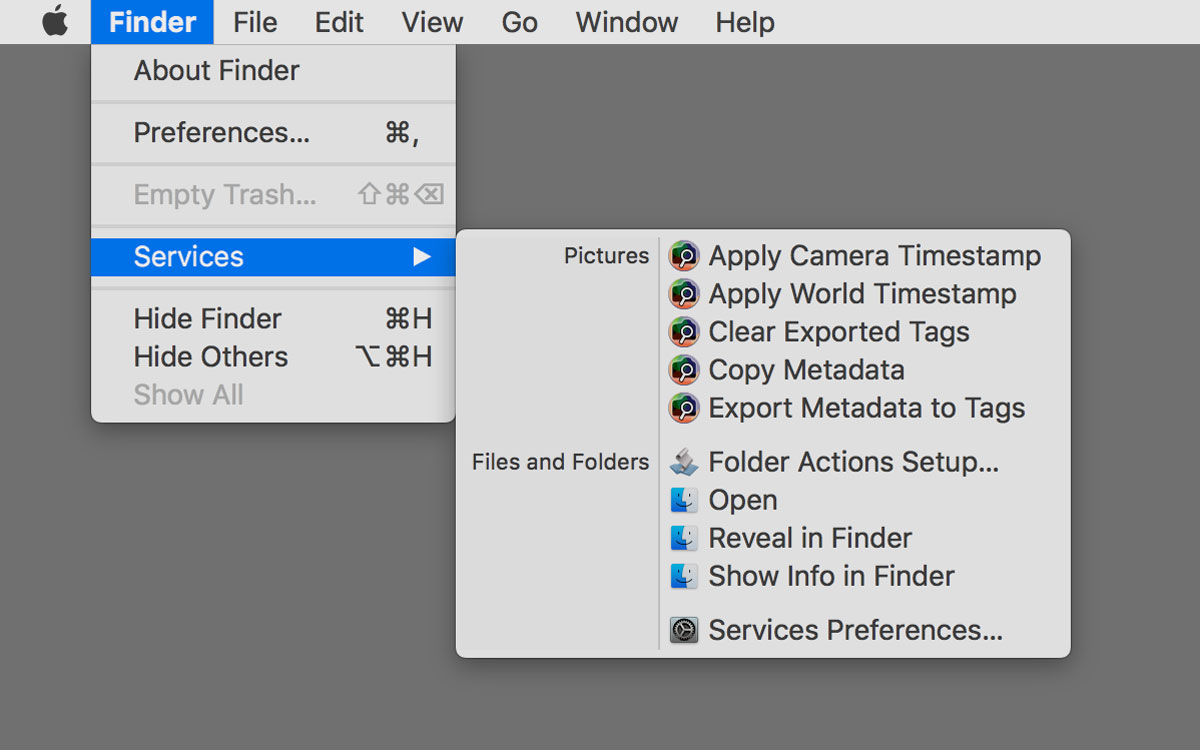 Dalle preferenze dell’applicazione è possibile personalizzare il funzionamento delle anteprime scegliendo gli elementi da visualizzare (metadati, risoluzione, il rapporto di aspetto di un’immagine, data e ora) in Quick Look. Dal menu “Servizi” del Finder (o con il tasto destro del mouse o equivalente combinazione via trackpad) è possibile richiamare servizi per l’esportazione dei metadati, copiarli negli Appunti di sistema, fare in modo che la data di uno o più file del Finder corrisponda alla data impostata nei metadati, ecc.