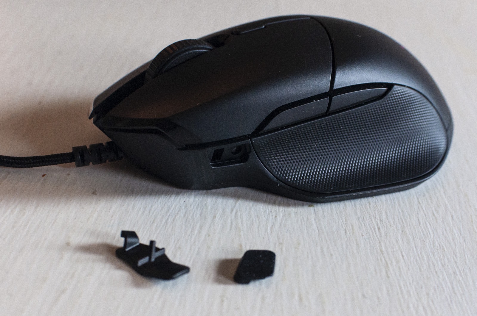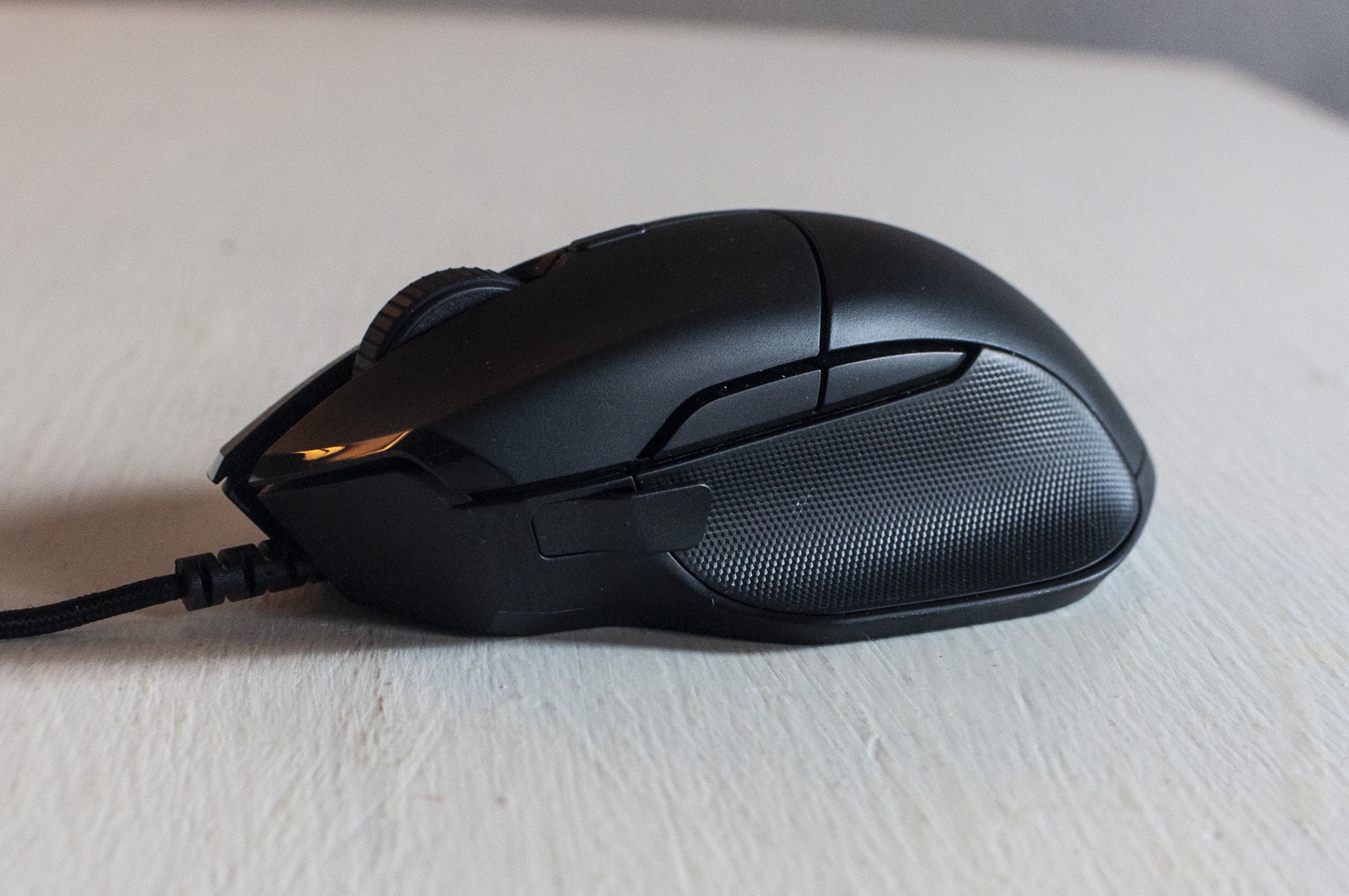 Appena sotto il sensore ottico a 6.400 DPI reali manca rispetto al fratello maggiore, di una regolazione per la rotella superiore, qui fissata su valori predefiniti. La luce Chroma è presente sulla parte superiore, dove appoggia il palmo, mentre è assente sulla rotella.