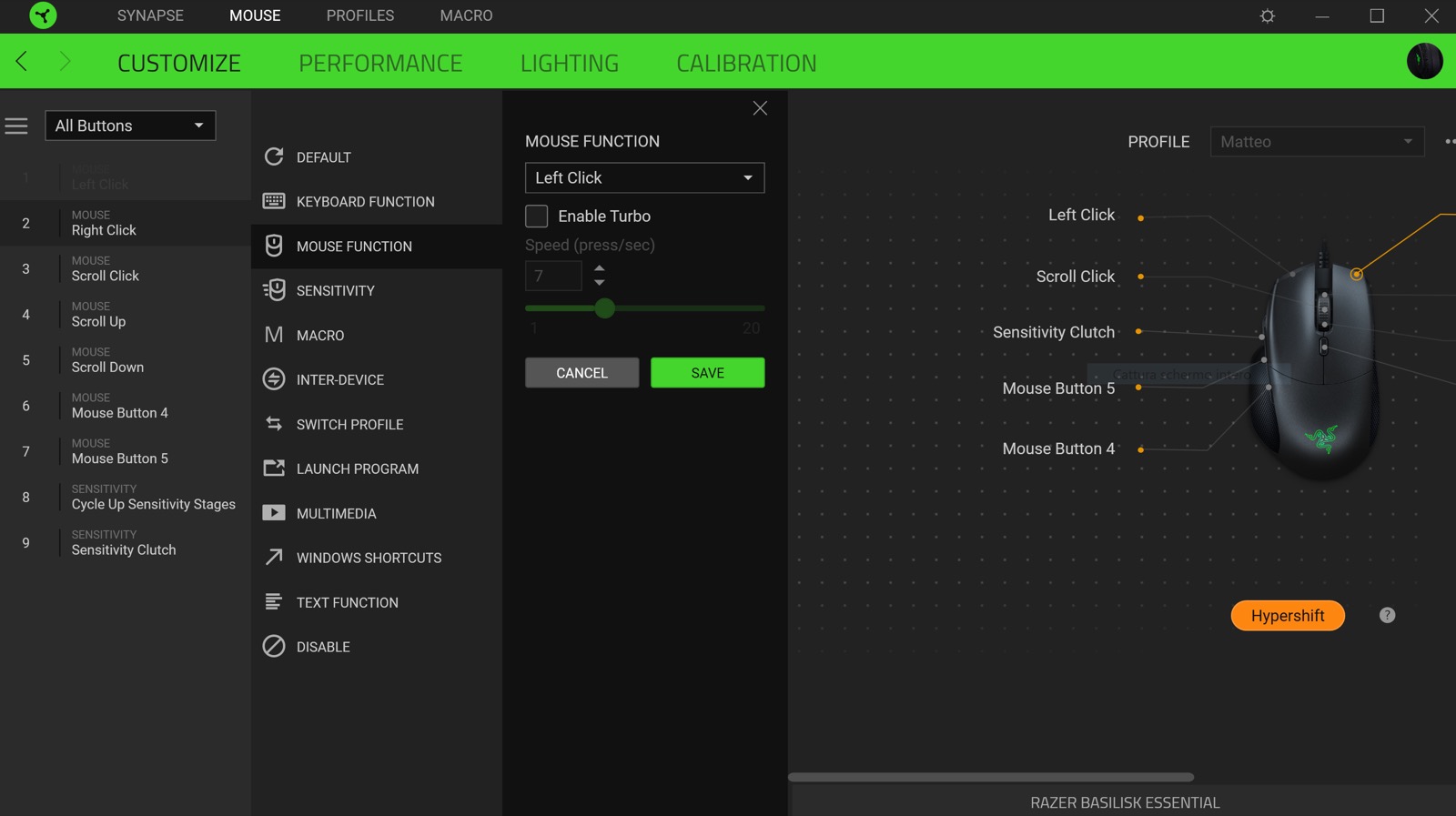 Per sfruttare la piena potenza di tutti i pulsanti invece ci siamo affidati a USB Overdrive, di cui avevamo già parlato in occasione del Razer Mamba Elite, questo perché diversamente dal Basilisk, il Razer Basilisk Essential non è più compatibile con i driver Synapse 2.0 per macOS.