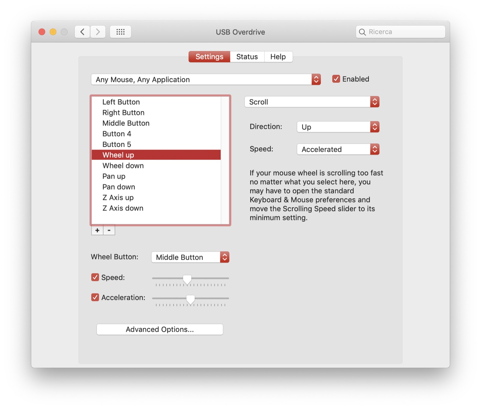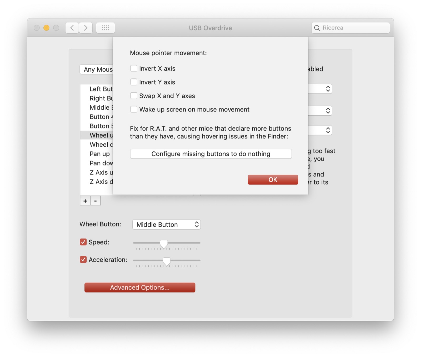 USB Overdrive ha permesso la personalizzazione di tutti i pulsanti e anche una regolazione più accurata di velocità e accelerazione, fattori essenziali per chi vuole provare sino in fondo come funziona il mouse su Mac. Purtroppo però la personalizzazione del clutch button non è stata ottimale: funziona come un tasto, su questo non c’è problema, ma resta inferiore all’utilizzo su Windows, come diremo a breve.