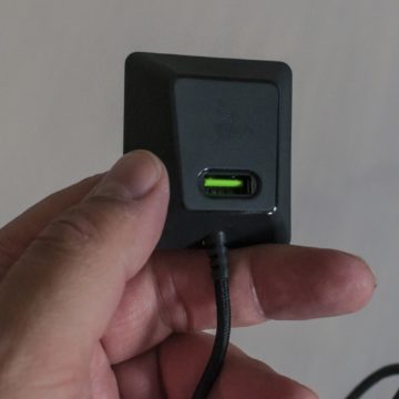 Sempre a destra trova posto il pulsante per l’accensione e lo spegnimento, che tra l’altro propone anche feedback sonoro in cuffia: a sinistra invece c’è l’alloggio dell’antenna USB, comodo per il trasporto. L’antenna, in pratica un piccolo dongle wireless, sostituisce sia il cavo analogico con jack che una connessione Bluetooth: una scelta molto importante da parte di Razer e ci sentiamo di condividerla, dopo averne valutato la resa.
