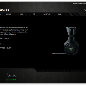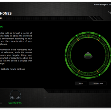Diversamente da altri prodotti Razer, le cuffie funzionano a dovere anche senza aver installato i driver Synapse, che si scaricano gratuitamente dal sito: una volta aggiunto il dongle USB OS X ha visto subito la periferica (solo in stereo) e ci ha permesso di deliziarci del suono. Ma è con i driver che tutto inizia a funzionare a meraviglia: una volta installati questi hanno riconosciuto la periferica e chiesto un piccolo aggiornamento interno, dopodiché la prima schermata è dedicata alla fase di calibrazione dell’audio, che deve essere fatta singolarmente per ogni computer a cui le associamo (diversamente dagli altri set che invece si sincronizzano con il cloud).