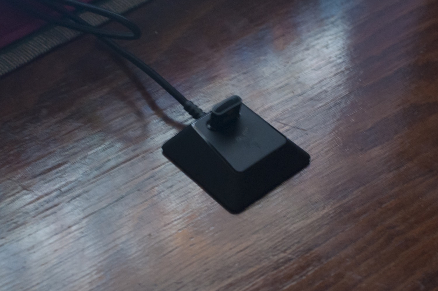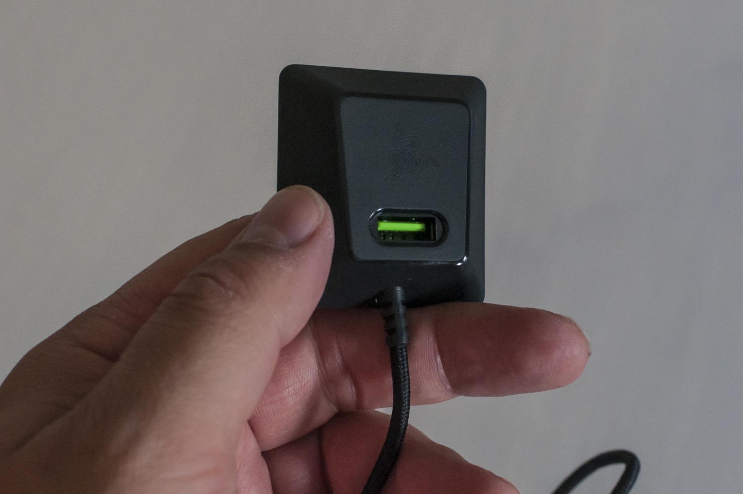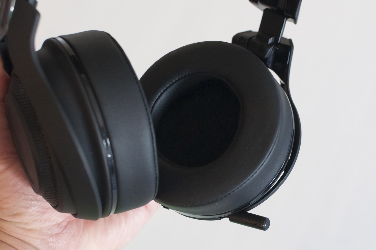 Sempre a destra trova posto il pulsante per l’accensione e lo spegnimento, che tra l’altro propone anche feedback sonoro in cuffia: a sinistra invece c’è l’alloggio dell’antenna USB, comodo per il trasporto. L’antenna, in pratica un piccolo dongle wireless, sostituisce sia il cavo analogico con jack che una connessione Bluetooth: una scelta molto importante da parte di Razer e ci sentiamo di condividerla, dopo averne valutato la resa.
