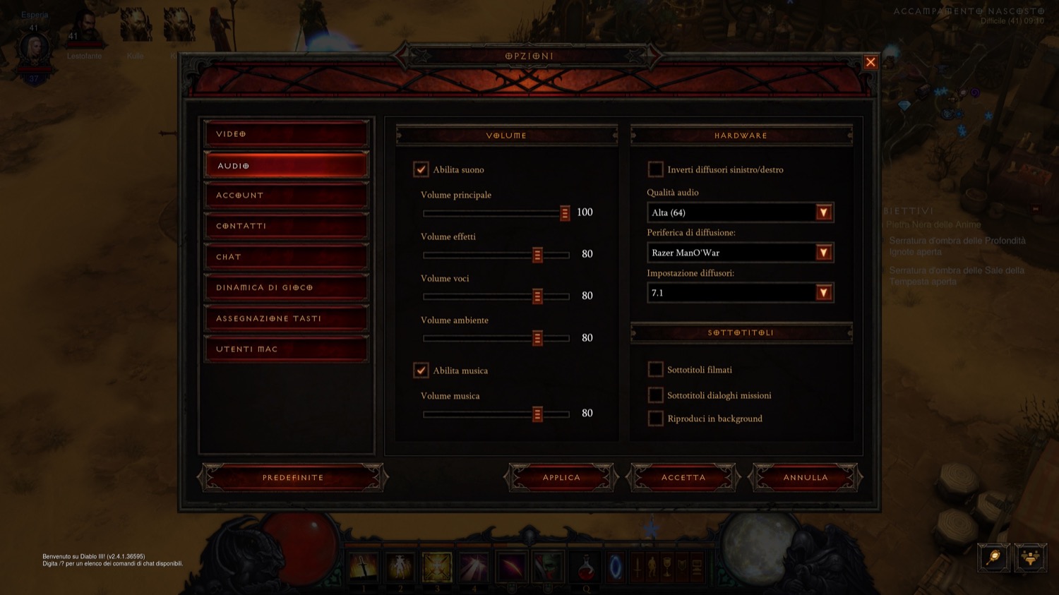 Abbiamo provato sia Starcraft II Legacy of the Void che Diablo III e, scavando nelle preferenze, abbiamo potuto subito notare come entrambi i giochi permettano la gestione dell’audio in 7.1 e, attivati, il risultato sia tangibile anche se non straordinario (più per colpa dei giochi che dell’hardware). in realtà la bontà di questo sistema forse emergerebbe con un Blu-Ray multicanale o con un gioco che abbia davvero un sistema audio tridimensionale, che su Mac si fa fatica a trovare.