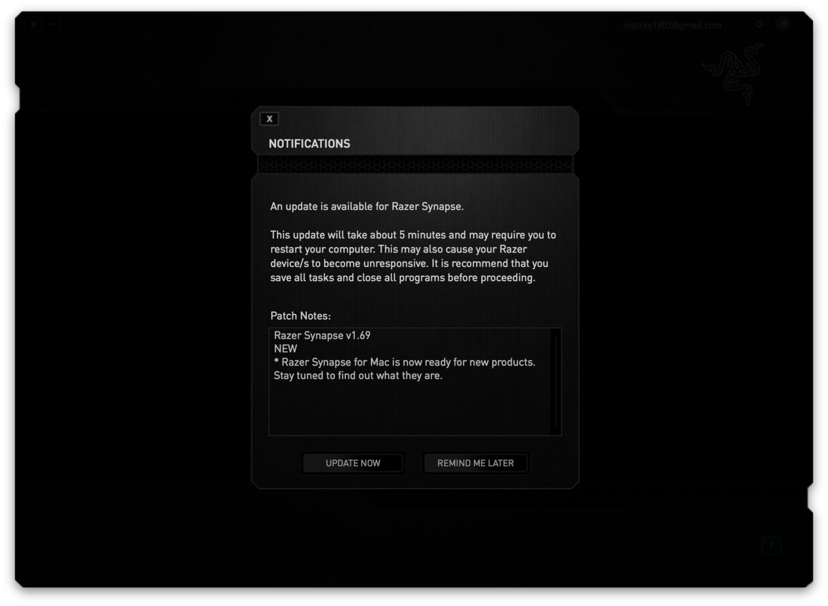 Ma andiamo con ordine e cerchiamo di capire: il primo indizio è arrivato due giorni fa, quando l’aggiornamento 1.69 dei driver Synapse (necessari per comandare mouse, tastiere e cuffie Razer) riportava, tra le note tecniche, una ipotetica compatibilità dei Mac con i nuovi prodotti in arrivo.