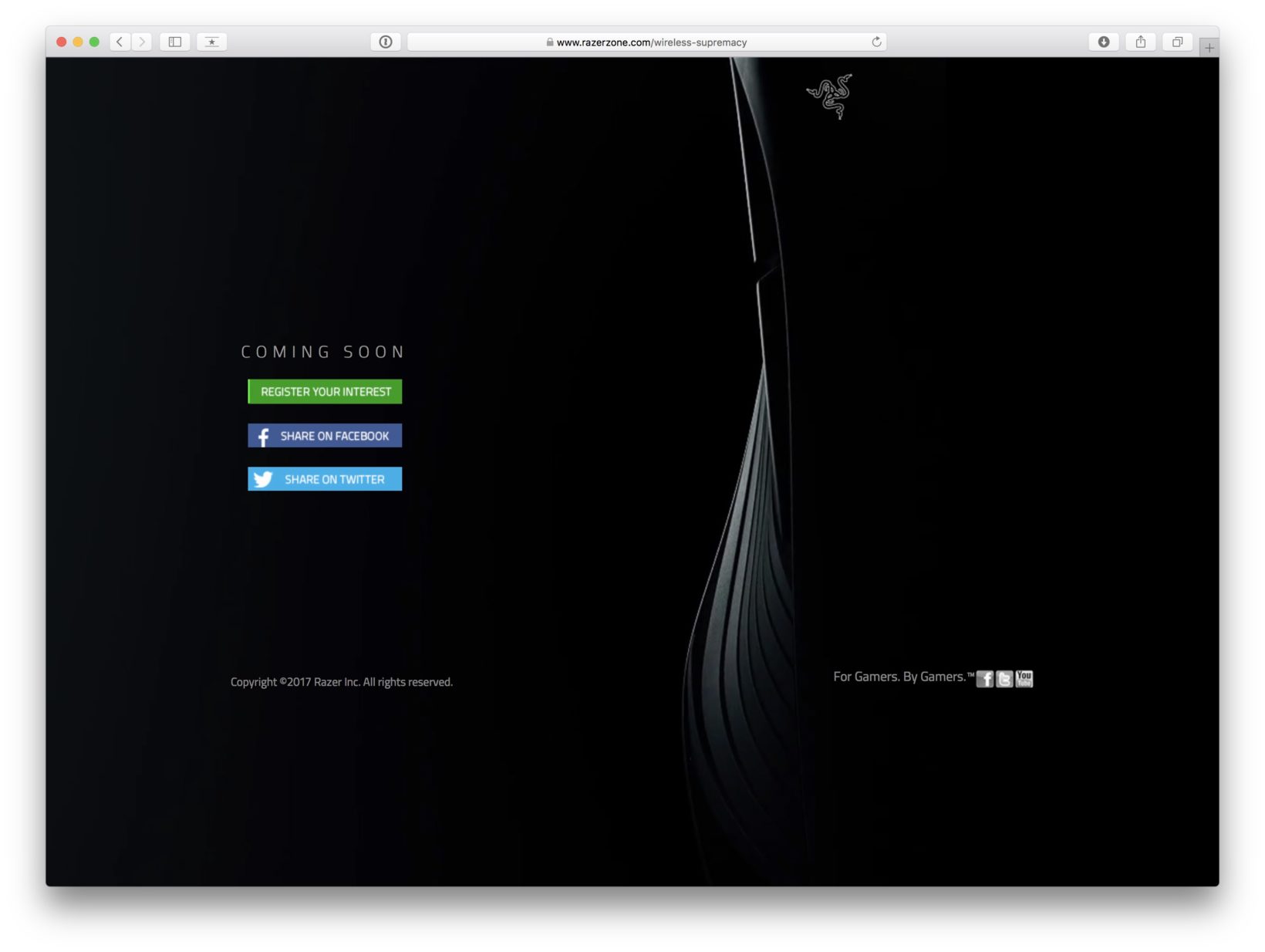 L’indizio finale (per ora) è dato dalla pagina presente nel sito Razer, intitolata Wireless Supremacy: all’interno della pagina solo un profilo di quello che potrebbe essere il laterale di un mouse, con la parte gommosa adatta alla presa per il pollice e i due tasti laterali. D’altro canto, la presenza in alto del logo Razer piccolo (e senza illuminazione Chroma) potrebbe indurre a pensare che si tratti di un oggetto molto più grande, come appunto un proiettore (e quelli che sembrerebbero tasti magari sono qualcos’altro).