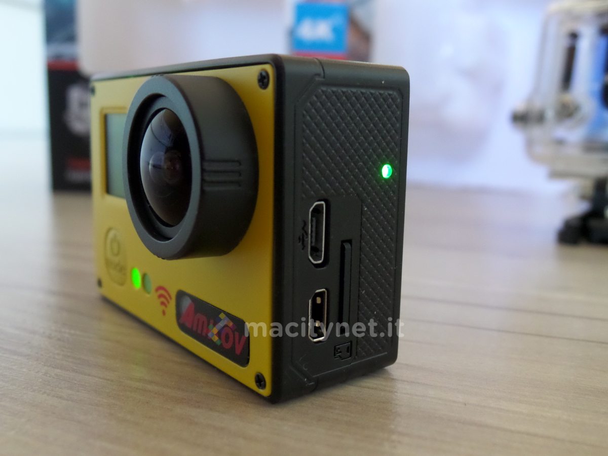 La telecamera dispone sul lato destro dell’ingresso Micro USB per la ricarica, dello slot MicroSD per la memoria interna, nonché dell’ingresso Micro HDMI per il collegamento ad una TV. Insomma, tutte le funzioni che ci si aspetterebbe da un’action cam sono al loro posto e la Amkov da noi testata risulta sempre pronta per filmare qualsiasi evenienza. E’ in grado di catturare anche l’audio, e grazie al piccolo altoparlante permette di guardare filmati e ascoltare il sonoro direttamente dall’action cam. Nella media l’autonomia, con una batteria rimovibile da 1150 mAh si riesce tranquillamente a registrare per 1 ora circa, senza Wi-Fi attivo.