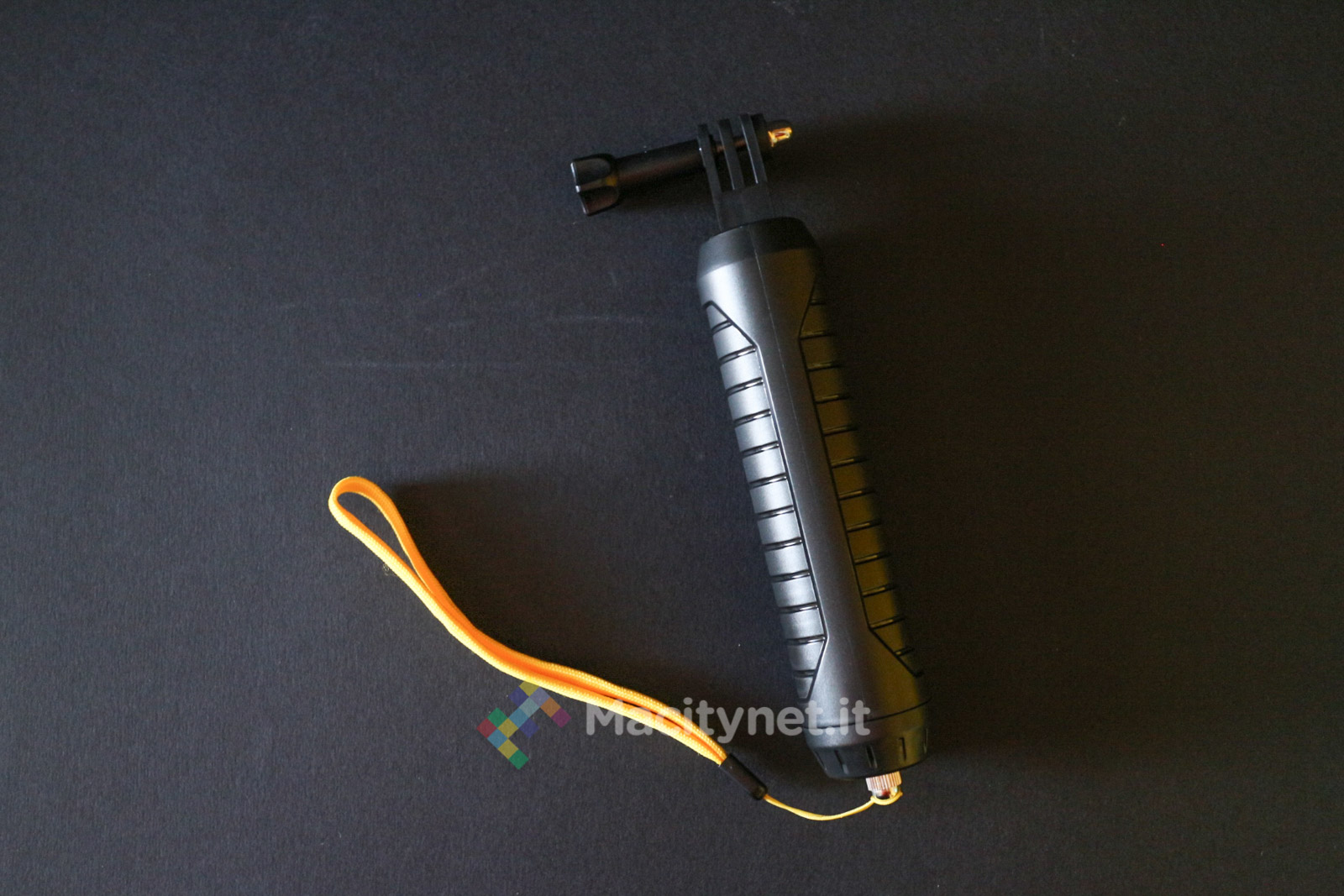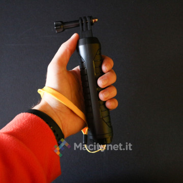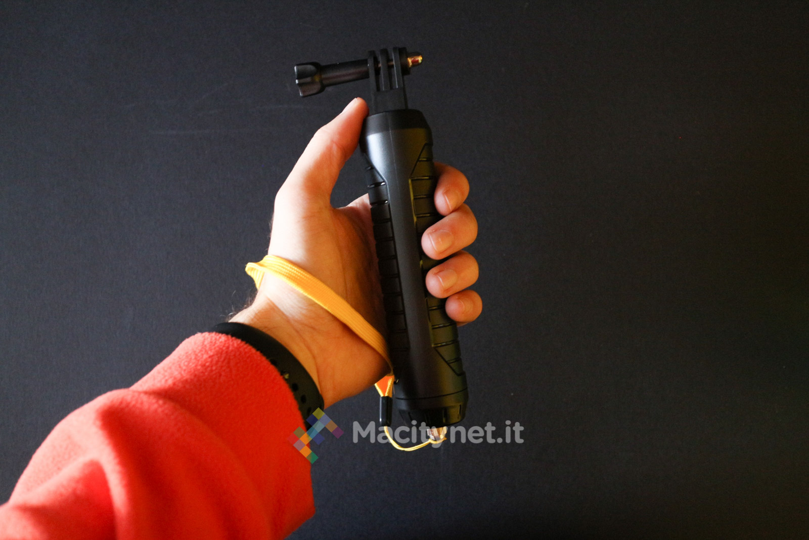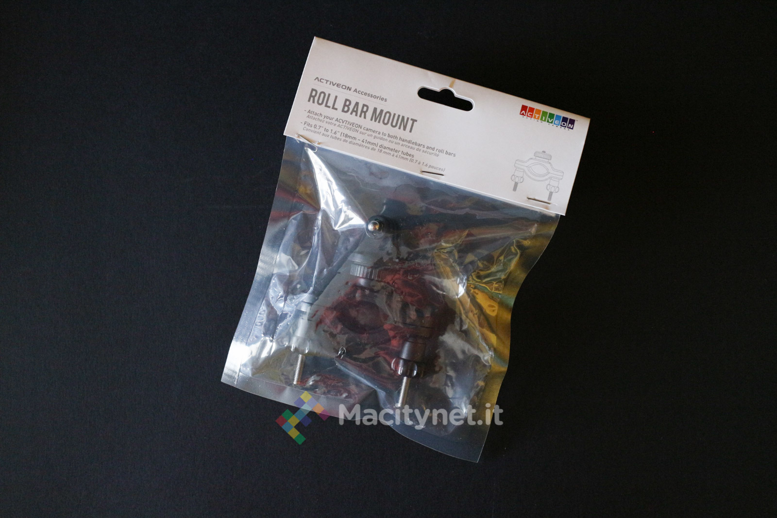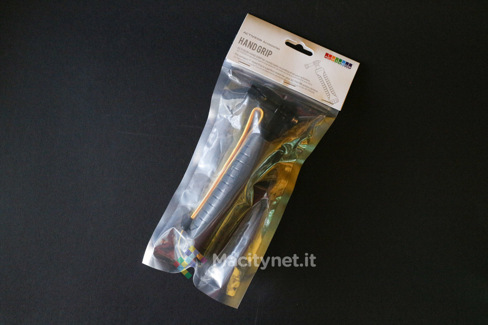 Insieme alla Activeon CX Gold la società ci ha dato la possibilità di provare due degli accessori acquistabili separatamente compatibili con l’action camera: l’hand grip ed il roll bar mount. Il primo è un manicotto accompagnato da un laccio da polso che facilita le riprese a mano libera anche nel caso di video-selfie ed è progettato per tenere la cam a galla qualora, durante ad esempio uno sport acquatico, scappasse malauguratamente di mano.