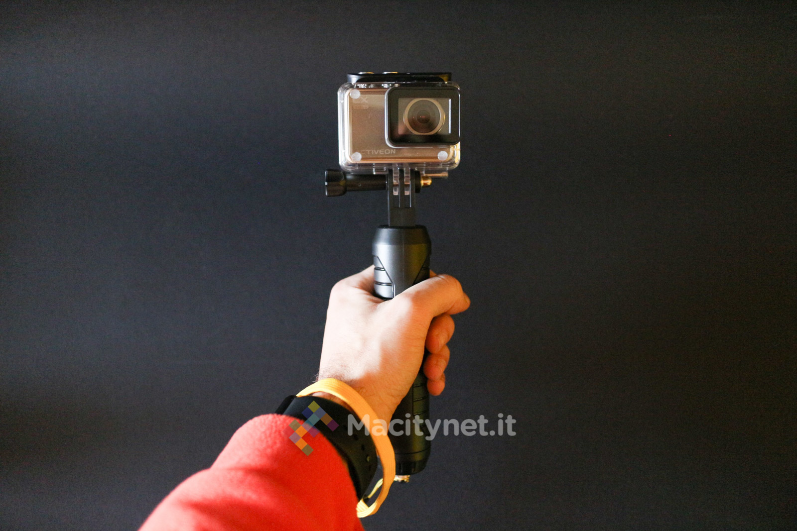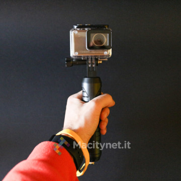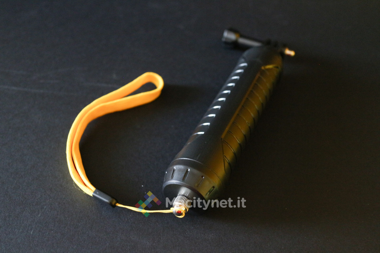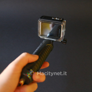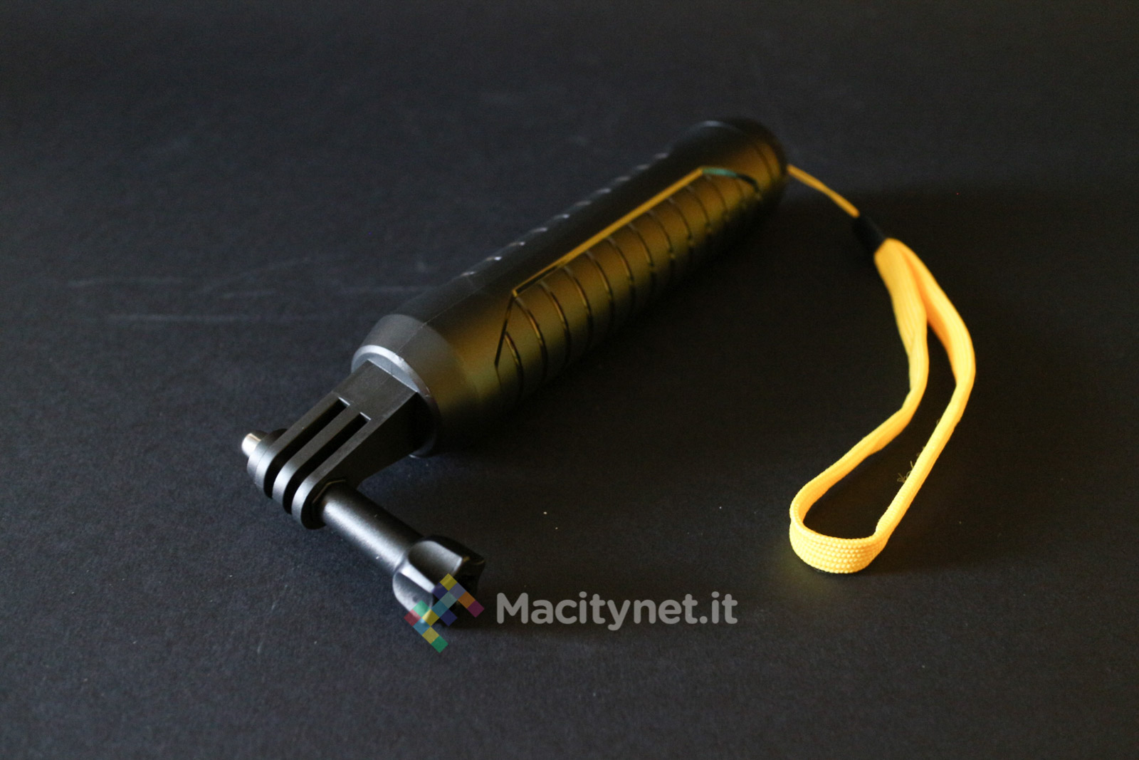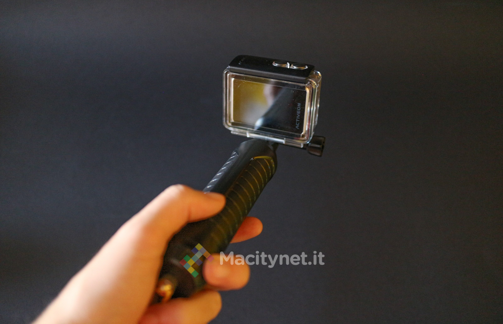 Insieme alla Activeon CX Gold la società ci ha dato la possibilità di provare due degli accessori acquistabili separatamente compatibili con l’action camera: l’hand grip ed il roll bar mount. Il primo è un manicotto accompagnato da un laccio da polso che facilita le riprese a mano libera anche nel caso di video-selfie ed è progettato per tenere la cam a galla qualora, durante ad esempio uno sport acquatico, scappasse malauguratamente di mano.