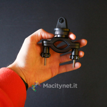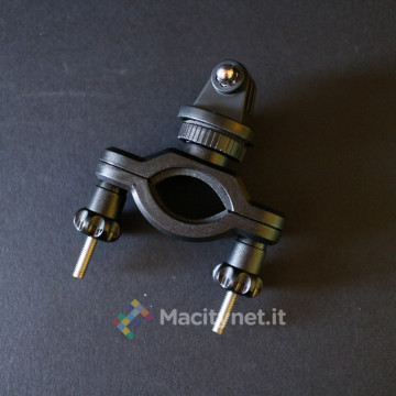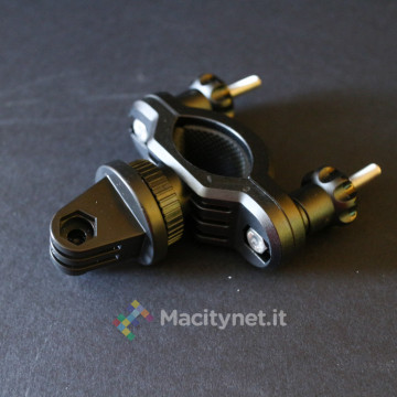 Il roll bar mount è un accessorio per agganciarla invece a qualsiasi superficie cilindrica, come il manubrio di una bicicletta, la sottile gamba di una sedia di metallo o simili. Differentemente da altri agganci simili, questo offre una testa orientabile di 360 gradi sul piano orizzontale, in pratica permette di orientare l’action cam indipendentemente dal tubo al quale si è chiusa la morsa. Risulta quindi molto più facile raggiungere l’inquadratura desiderata anche là dove sarebbe impossibile per altri supporti del genere.