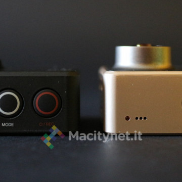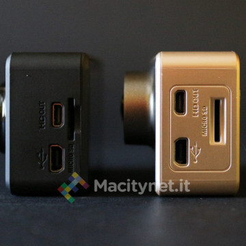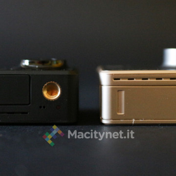 Spariscono le indicazioni MODE e ON/OFF/REC sui pulsanti per un look più minimale, inoltre sono di poco spostati speaker, porte HD OUT, batteria e microSD (per nulla rilevante nell’uso dell’action cam) ma soprattutto, e questo si nota parecchio, la telecamera sporge molto di più dal corpo della telecamera, di circa 1 centimetro contro i pochi millimetri della ACX. Il vetro dell’obiettivo è molto più convesso ed i componenti che si intravedono sembrano avere dimensioni di poco maggiori.