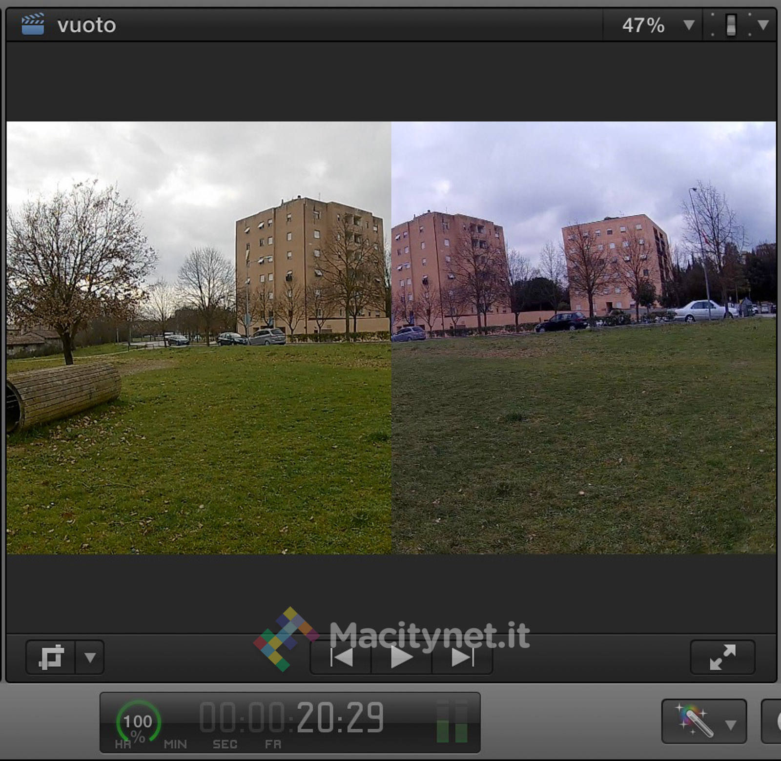 Di contro, ACXG sembra necessitare di una maggiore post-produzione in fase di montaggio qualora si volessero correggere piccoli errori o in generale ottenere risultati migliori. Passando improvvisamente da una scena illuminata ad una più buia, tende maggiormente a sovraesporre la ripresa. In generale inoltre, i colori risultano leggermente troppo saturi. Sono comunque sufficienti un paio di click su Final Cut (o qualsiasi altro software di montaggio video) per riportare i valori alla normalità ed ottenere, di fatto, dei colori più vicini alla realtà rispetto alla scena registrata da ACX.