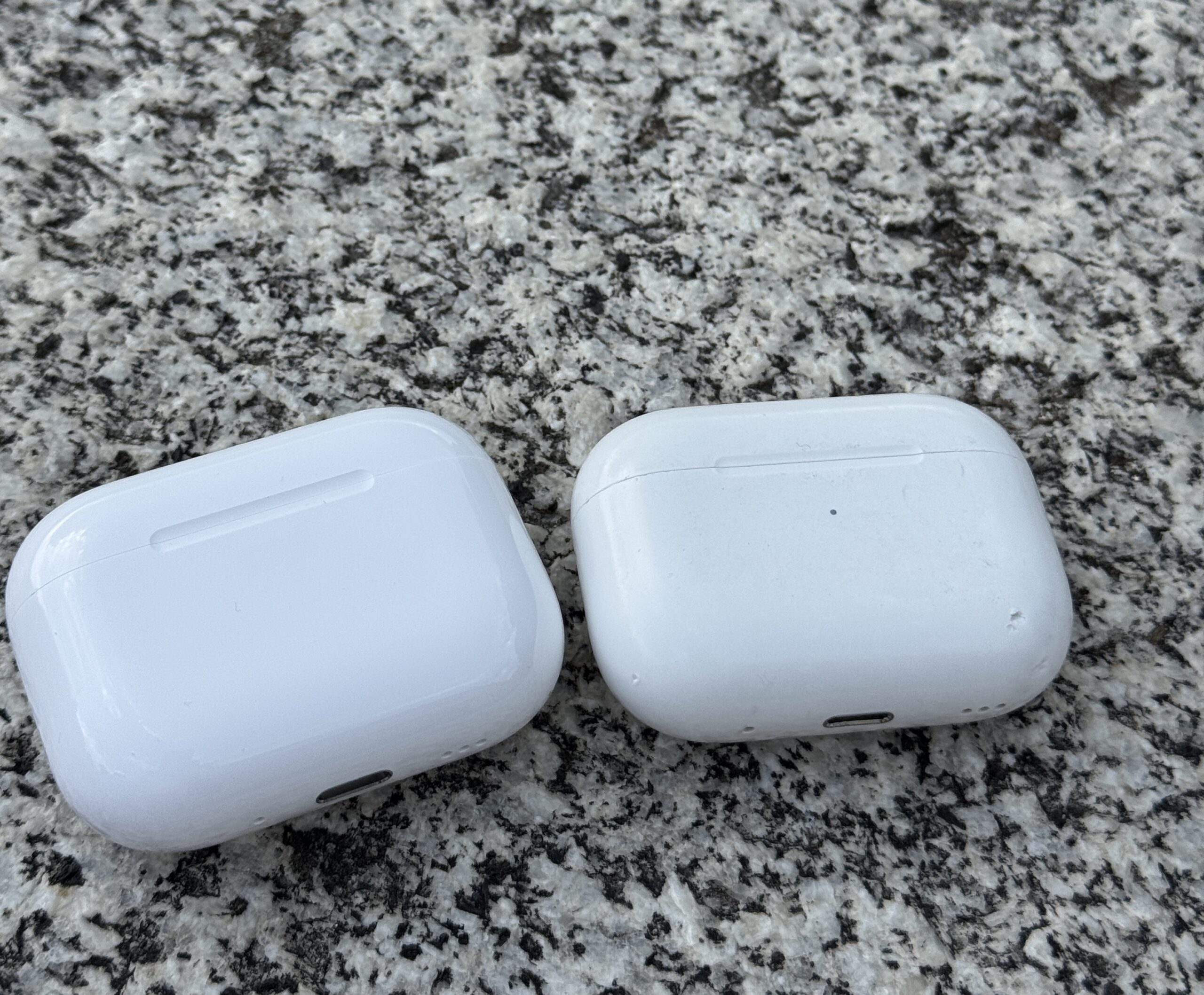 Airpods Pro 3 e 2 con il loro case di ricarica