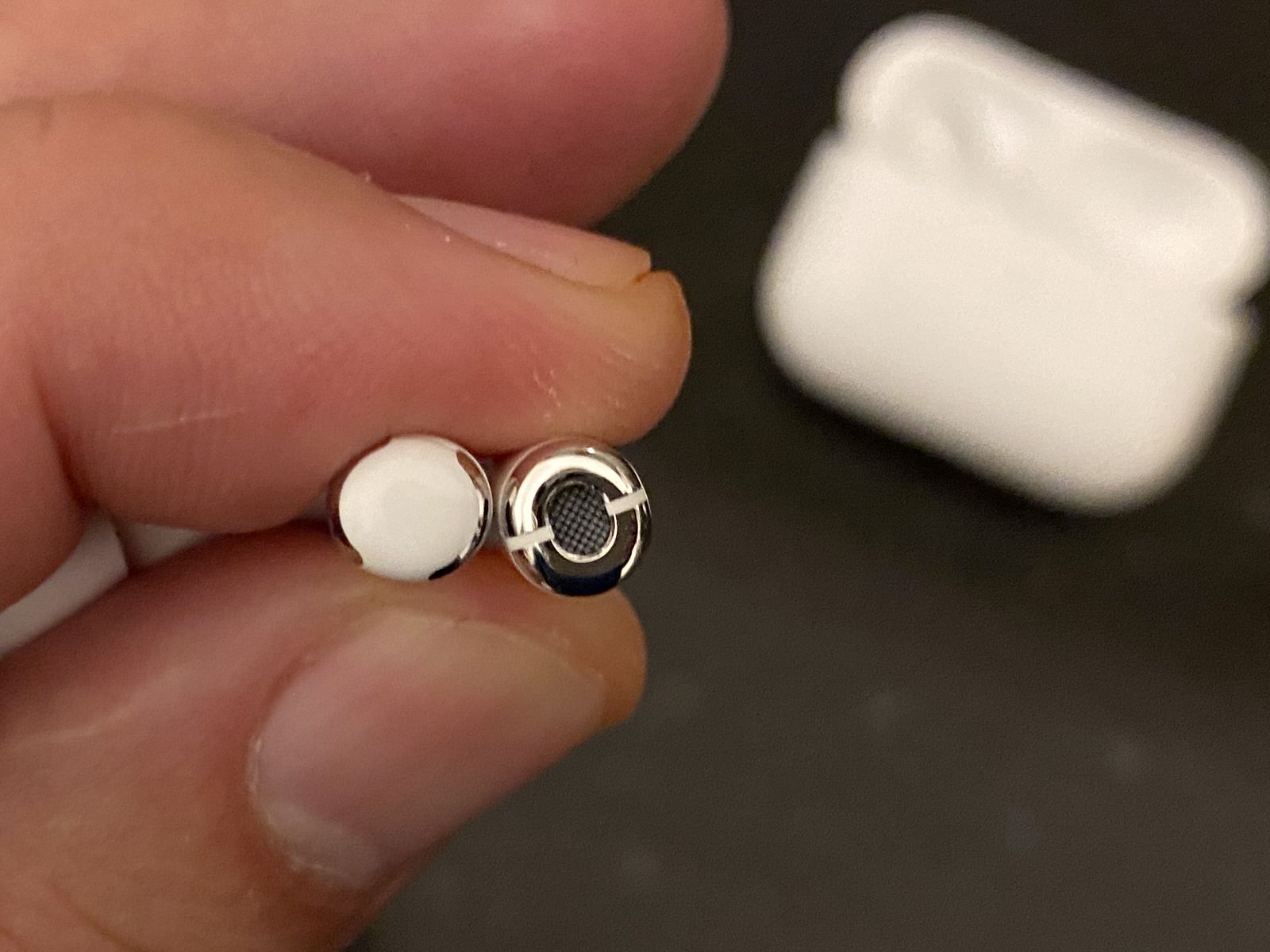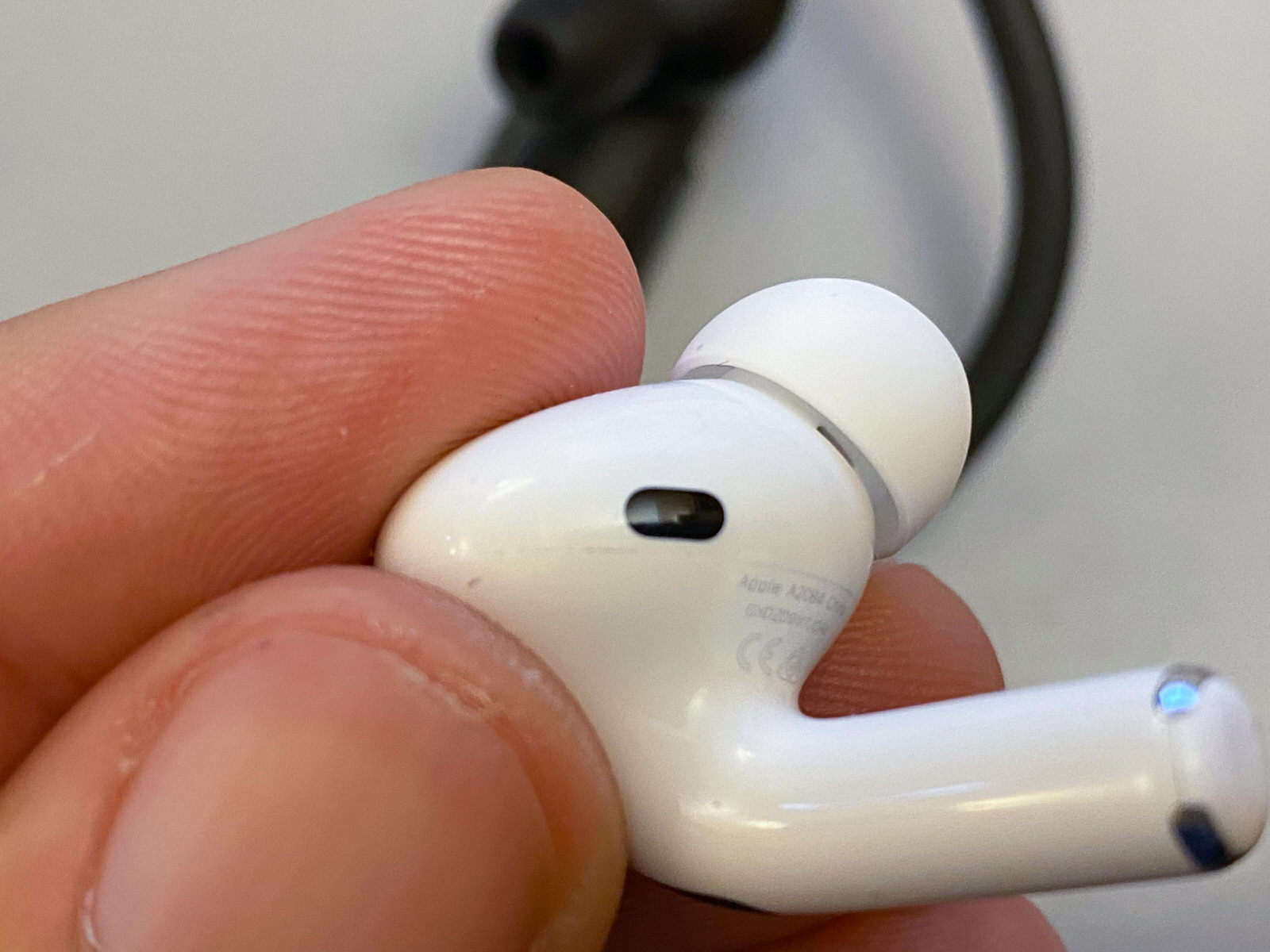 I questa immagine si nota il sensore capacitivo sull’asta di AirPods Pro