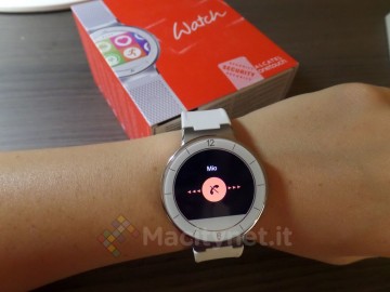 Leggermente scomodo, ma solo inizialmente, risulta il cinturino. E’ abbastanza rigido e le prime volte si potrà avere qualche difficoltà ad indossarlo e a sfilarlo. Al polso, invece, dopo aver trovato il giusto setup è piuttosto comodo. E’ consigliabile allacciarlo al polso in modo molto saldo, per garantire il corretto funzionamento del sensore per il battito cardiaco. Nel caso in cui non fosse allacciato a dovere, infatti, questo potrebbe non funzionare correttamente. In ogni caso, durante le nostre prove, abbiamo sempre rilevato correttezza e precisione nel battito cardiaco segnalato, sia in momenti di riposo, che sotto stress fisico. Sicuramente un valore aggiunto considerando il basso costo dell’indossabile. Alcatel raccomanda di effettuare la misurazione da fermi e con orologio ben stretto al polso.