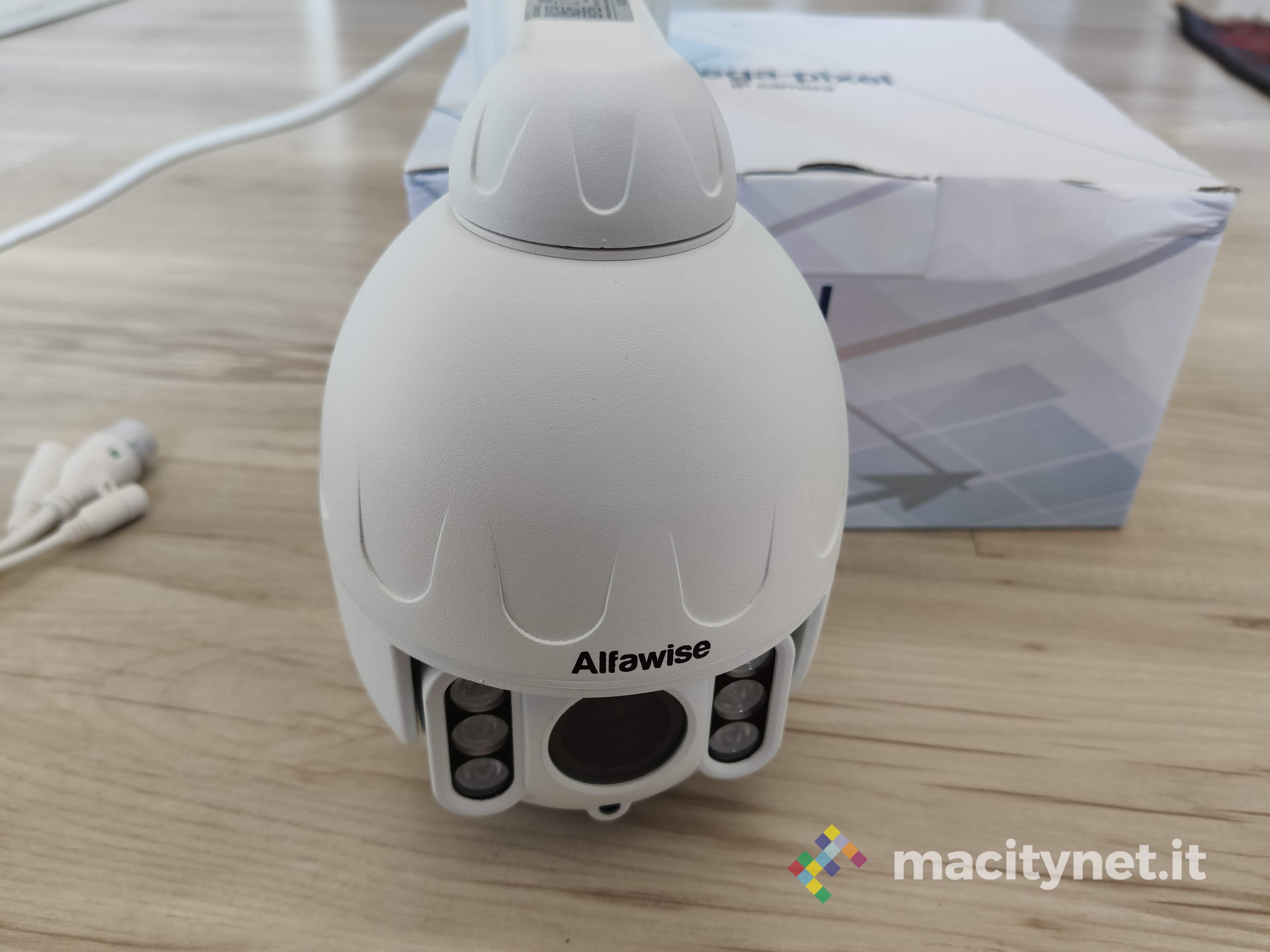 L’occhio della videocamera offre uno zoom ottico 5x, con un obiettivo da 2,8 – 12 mm, mentre l’Alfawise SD07W può essere ruotata di 355 gradi, così da avere un angolo di visione completo, mentre può spostarsi in verticale di 120 gradi.