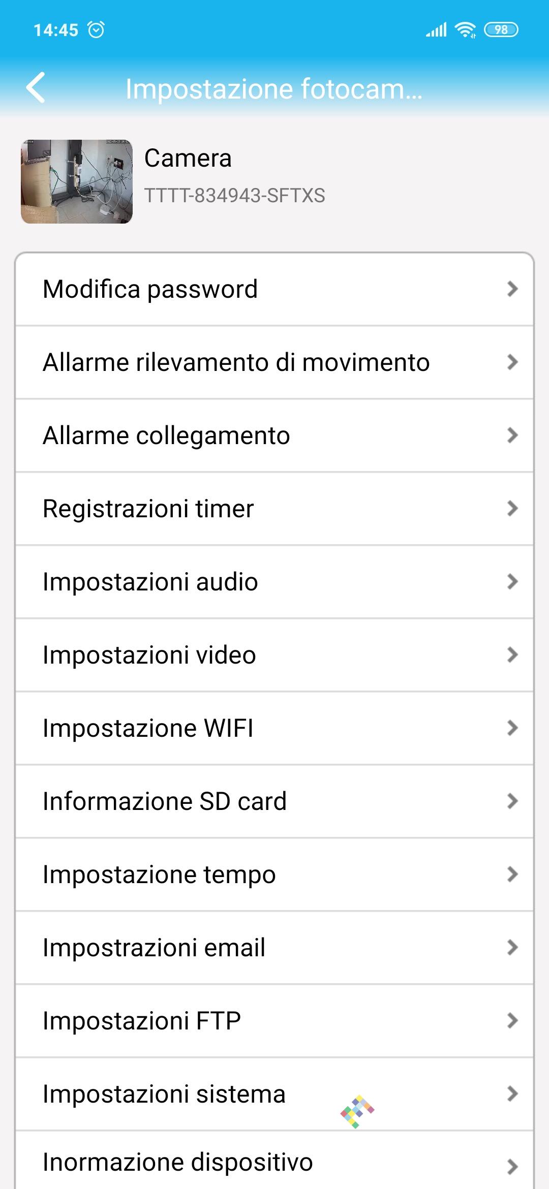 Nonostante la videocamera sia compatibile con WiFi o cavo ethernet, la prima configurazione ci ha dato esito positivo soltanto con il cavo. Evidentemente è necessario collegare la camera, in via diretta con il cavo ethernet, al router per la prima configurazione. Successivamente, dopo che l’Alfawise SD07W viene rilevata dall’app, è possibile entrare nelle impostazioni Wireless, per collegarla alla rete WiFi.