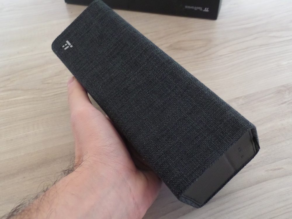 E’ l’estetica dell’altoparlante TaoTronics a rubare la scena non appena si apre il pacco. L’altoparlante ha dimensioni e peso molto simile a tutte le altre periferiche dello stesso tipo, pari a 20,8 x 7,2 x 7,2 cm, con un peso di poco superiore al mezzo chilo. Si trasporta, insomma, facilmente, ma considerata l’estetica, è pensato per stare in casa piuttosto che su un prato per un pic nic. Come già anticipato, infatti, l’altoparlante è interamente rivestito in lino, color grigio canna di fucile, mentre ai due lati un elegante rivestimento in simil pelle nasconde l’ingresso AUX e il connettore MicroUSB per la ricarica.