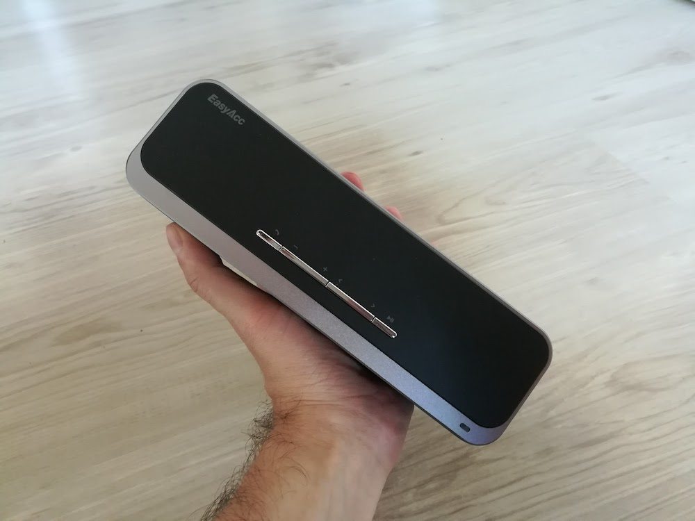 Un altoparlante elegante, che esteticamente non ha nulla da invidiare ad altre periferiche premium. La qualità audio è assolutamente in linea con il prezzo, con un volume non particolarmente alto, ma sempre pulito e fedele. Ottima l’autonomia e la funzione di vivavoce, grazie al microfono integrato, che rende EasyAcc un valido alleato sulla scrivania, in ufficio o anche in casa, da abbinare anche ad un Mac.