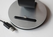 Il resto delle componenti è in plastica satinata di ottima fattura, piacevole al tatto ed antigraffio: quest’ultima è la caratteristica principe dello stand in quanto è dotato di una funzionalità che permette il collegamento e la successiva rimozione dei dispositivi con estrema facilità evitando al contempo il contatto con l’appoggio posteriore. Il connettore Lightning si trova infatti alloggiato all’interno di un “rullo”, sempre in plastica, con sistema basculante che lo rende mobile e stabile allo stesso tempo: sia che decidiamo di inserirvici l’iPhone 5/5S/5C, l’iPod touch di ultima generazione, oppure un qualsiasi iPad Mini, lo stand sarà in grado di accoglierli senza dover necessariamente strusciare il retro in alluminio con la plastica della componente utile per l’appoggio del dispositivo.