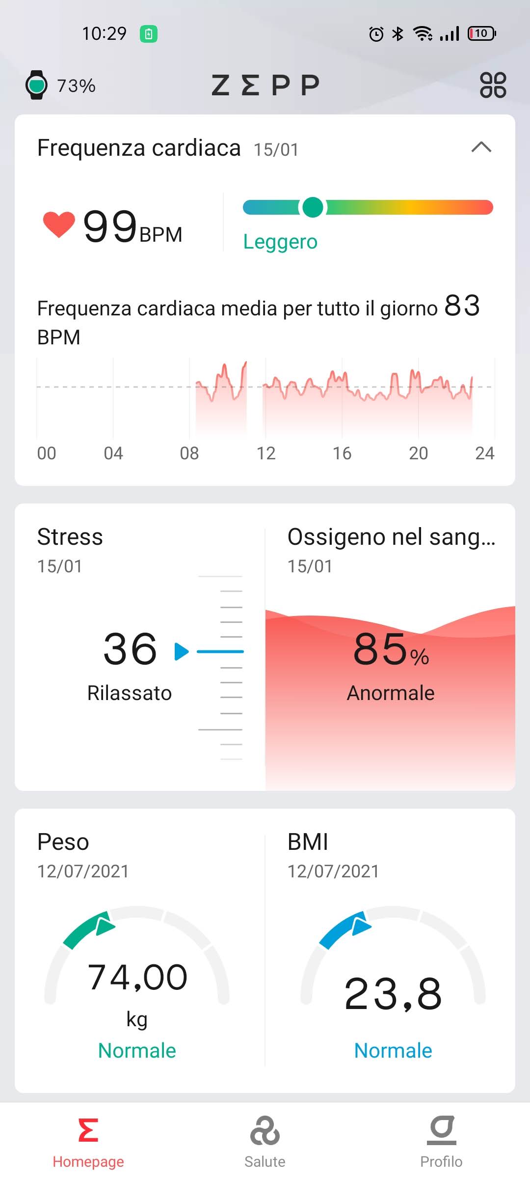 L’applicazione zepp ha sostituito ormai da parecchio tempo quella che un tempo si chiamava Amazfit. Non troppo amata dal pubblico, perché un po’ confusionaria, in realtà dopo un primo periodo di adattamento, risulta offrire all’interno di un’unica schermata tutte le informazioni più utili.