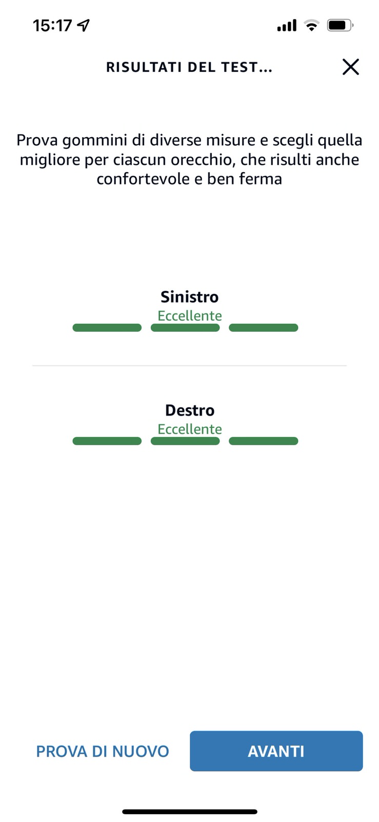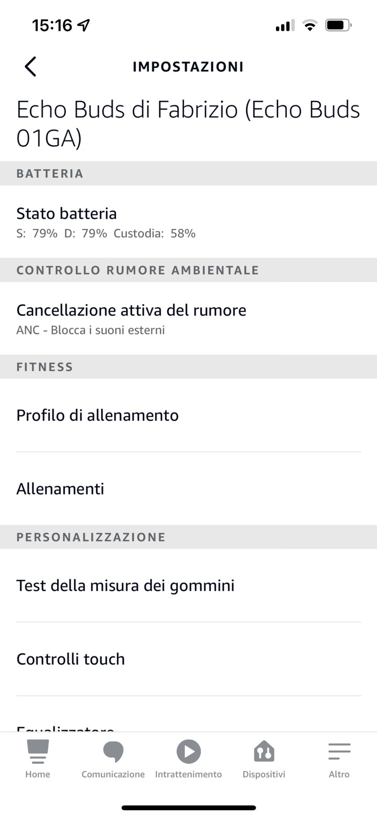 Abbiamo accennato al fatto che siamo di fronte ad un dispositivo Alexa da indossare e proprio all’applicazione Alexa dobbiamo rivolgerci se vogliamo avere pieno controllo sugli auricolari Amazon. L’app serve per abbinarli rapidamente e anche a gestirne le funzioni e la personalizzazione. Sfruttando l’applicazione possiamo fare operazioni come attivare o disattivare la funzione di cancellazione del rumore, modificare la funzione dei controlli touch, testare la misura dei gommini, verificare dettagliatamente (senza ricorrere al codice colore dei LED) la capacità residua della batteria, regolare i livelli dell’equalizzatore. L’applicazione svolge anche un test di aderenza degli auricolari, un sistema molto simile a quello di Airpods Pro.