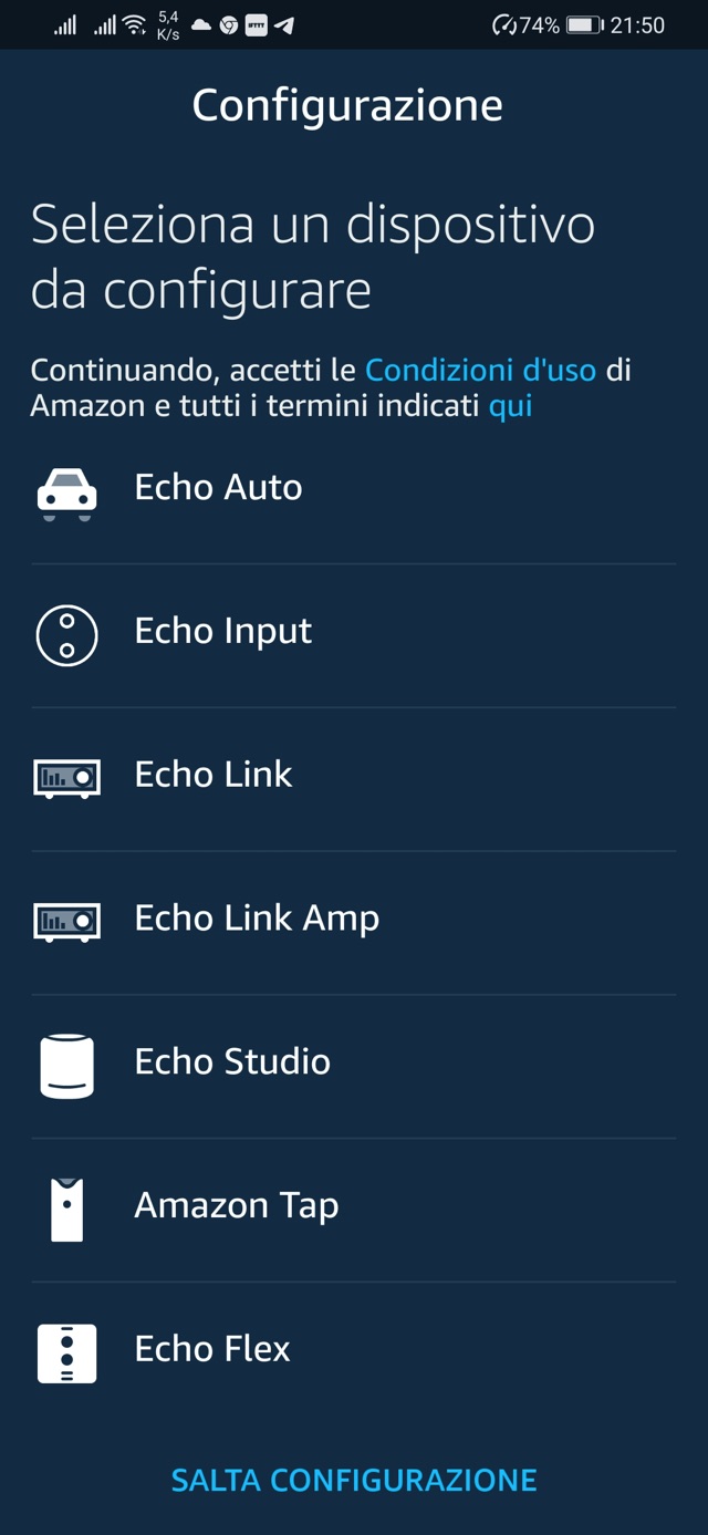 Qui sotto le schermate per aggiungere lo speaker ad un sistema Alexa e collegarlo anche in modalità Home Teather.