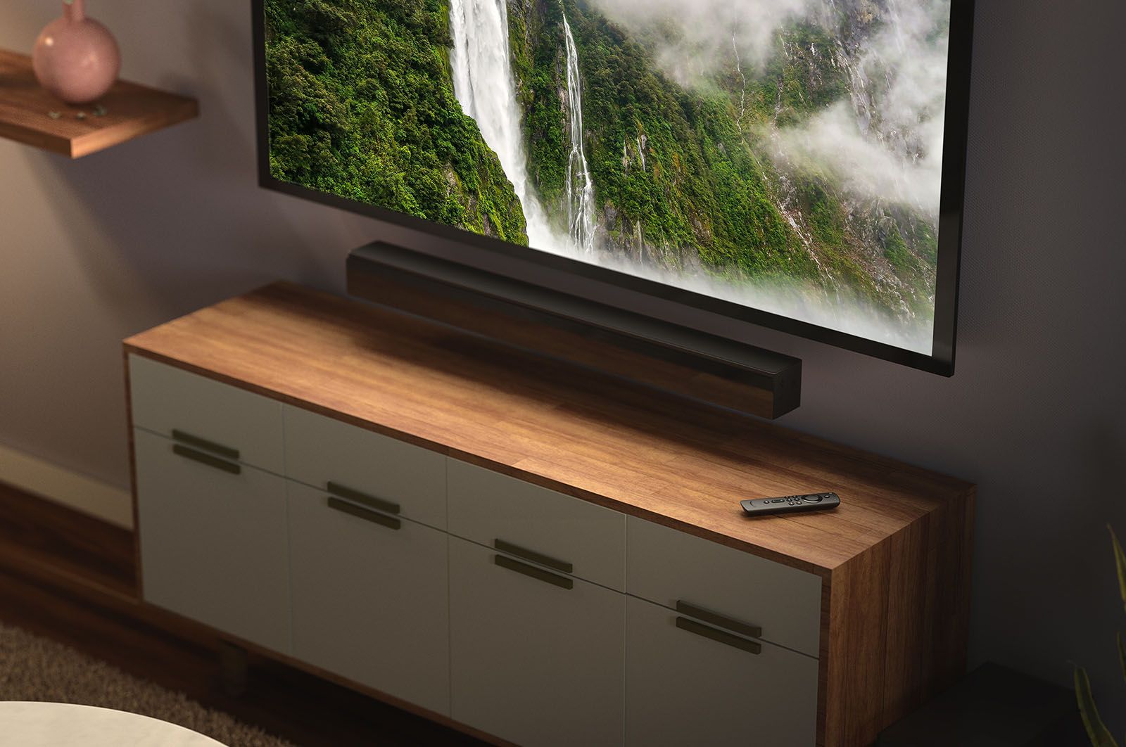Il sistema non è attivo al richiamo vocale “Alexa…” ma dispone di un piccolo tasto nel telecomando che, una volta schiacciato, apre al piccolo microfono e accetta tutti i tipi di comandi, come un altro device compatibile con Alexa.