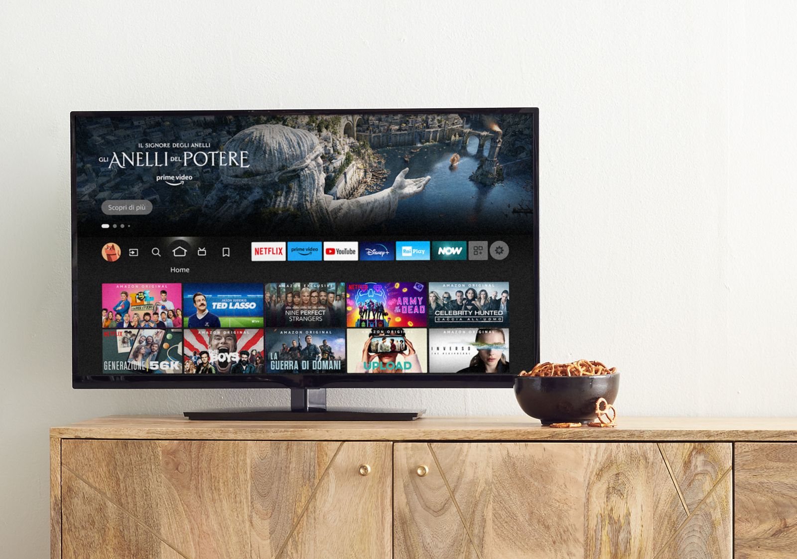 Ovviamente l’utente è in grado di agire in modo indipendente: non solo sul telecomando sono presenti (e pre programmati) gli indirizzi diretti per i vari Amazon Prime Video, Netflix, Disney+ e Amazon Music, dal menu in centro nella schermata principale è possibile anche accedere a tutti i canali streaming e se non ci sono, scaricare le App relative dallo store.
