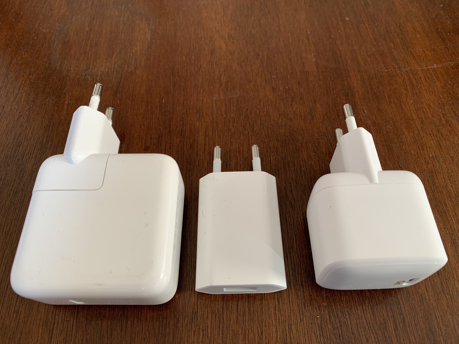 A proposito degli iPad Pro, non abbiamo a disposizione un caricabatterie Apple da 18W che viene fornito con essi, ma da alcune immagini che si trovano in rete, è evidente che il prodotto di Cupertino è simile per dimensioni, ma meno potente. Infine è altrettanto evidente che per dimensioni il caricabatterie di iPhone vince (ma non a mani basse) per dimensioni, ma la potenza che fornisce (5W) è di sei volte inferiore rispetto a quella del suo concorrente diretto.
