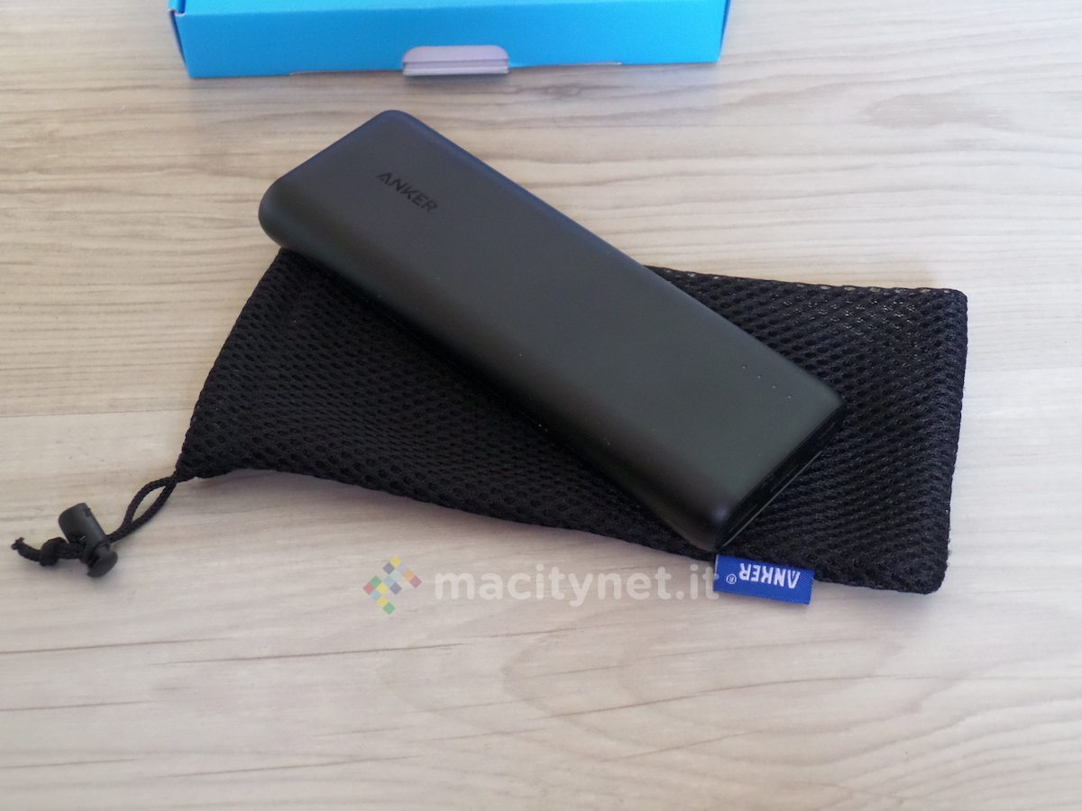 Anker PowerCore 20100 mAh è tra le batterie più capienti e, allo stesso tempo, più compatte sul mercato. Offre affidabilità e velocità nella ricarica, ma come tutte le power bank dello stesso tipo, impiega molto tempo a ricaricarsi. Assente il cavo Lightning nella confezione, ma viene offerto un pratico astuccio per traportare la batteria in totale sicurezza ed eleganza. Rapporto qualità prezzo elevato. Tutto questo messo insieme potrebbe fare di questa batteria, l’unica batteria di cui molti potrebbero avere bisogno.