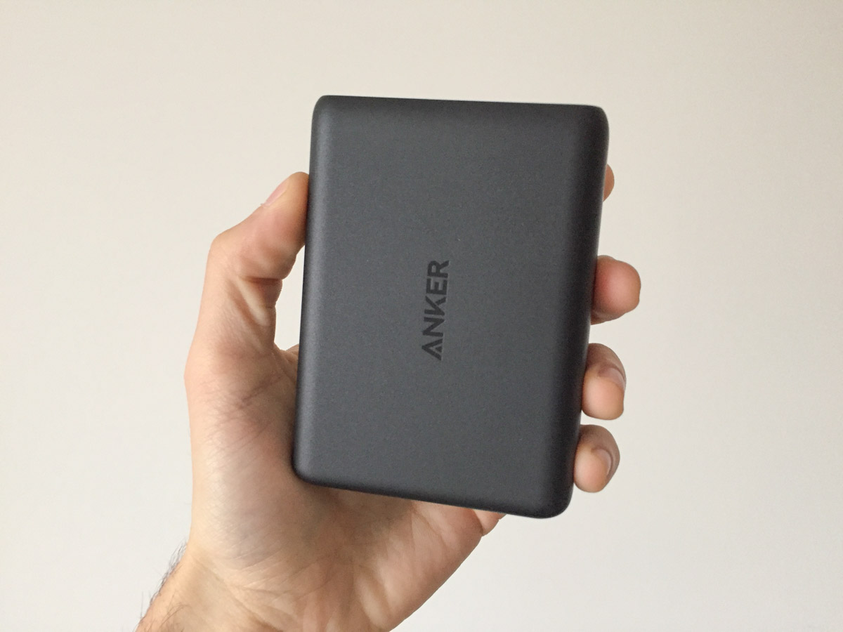 Anker PowerPort Speed 5 non è molto diverso dagli altri prodotti simili che abbiamo recensito in passato. Costruito con una scocca in policarbonato apparentemente molto robusto e rivestito da una sottile satinatura, rispetto alla potenza promessa è davvero compatto: misura all’incirca 10 x 7,5 x 3 centimetri e pesa intorno ai 200 grammi.