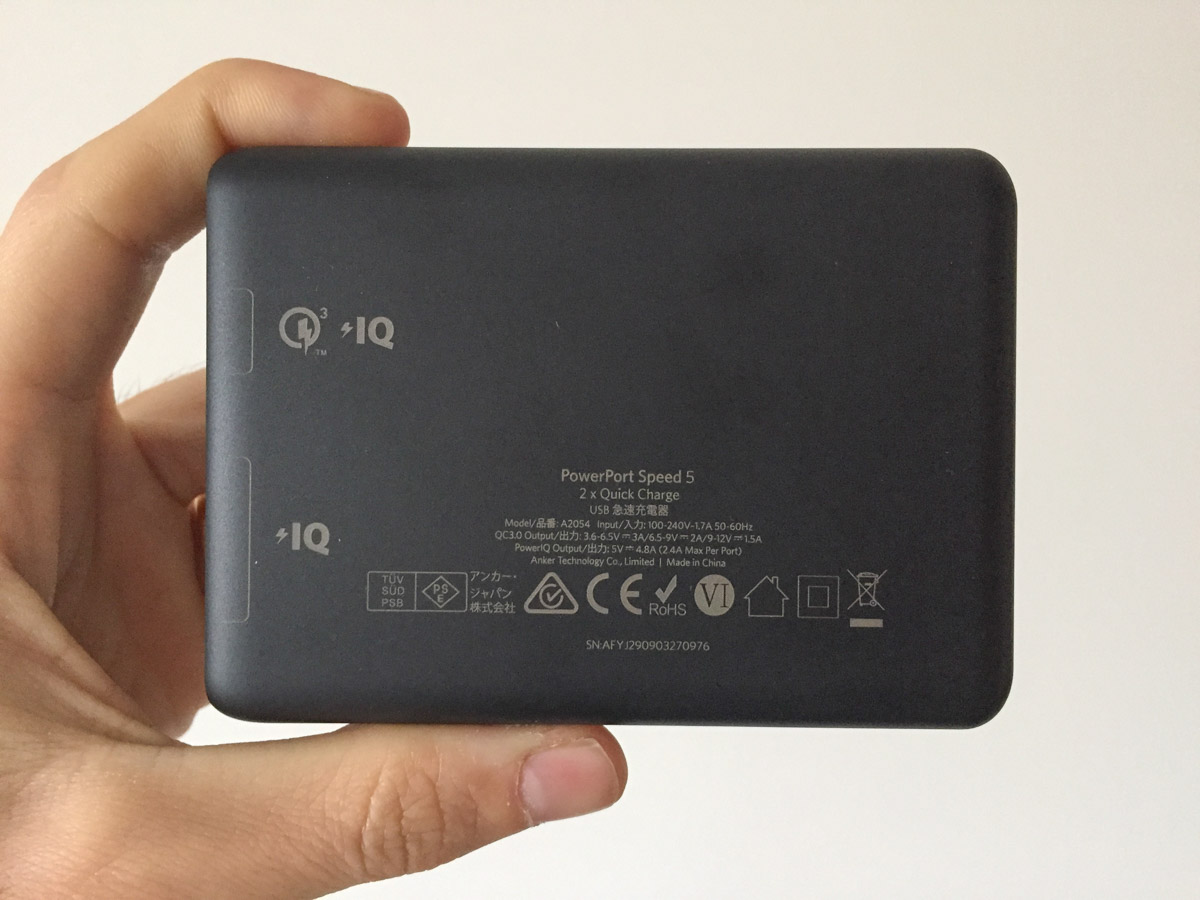 Come dicevamo, due delle porte (di colore azzurro) supportano la tecnologia Qualcomm Quick Charge 3.0. Ciò significa che entrambe promettono una velocità di carica fino a quattro volte superiore a quella dei caricabatterie standard. Prendendo per esempio un tempo di ricarica di 35 minuti, un caricatore da 5V / 1A come quello che Apple si ostina ad inserire ancora oggi nelle confezioni degli iPhone riuscirebbe a ripristinare mediamente il 20% di energia. Nello stesso lasso di tempo e sottoponendo alla ricarica lo stesso dispositivo, Anker PowerPort Speed 5 è in grado di ripristinare fino all’80% dell’energia.