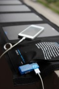 Test al Sole, senza nuvole, ore 12:30 del mattino – ben diversi i risultati all’ora indicata, quando il Sole comincia ad essere quasi perpendicolare al Solar Charger. Qui, abbiamo testato l’accessorio con l’iPhone al 23% di carica, l’iPad al 10% di carica e lo smartphone Android al 90% di carica: il primo, da solo, veniva ricaricato con 0.85 A, il tablet 1.30 A e lo smartphone Android a 0.35 A: combinando insieme iPhone e iPad, il primo assorbiva 0.40 A mentre l’iPad 0.80 A, mentre lo smartphone Android, sia in un caso che nell’altro, manteneva i suoi 0.35 A di assorbimento. Ma la bassa energia fornita all’Android, più bassa di quella di iPhone, dipende probabilmente dal fatto che il pannello da noi provato era ottimizzato per iOS e ancora privo di PowerIQ, la tecnologia che permette di leggere correttamente i dispositivi connessi. Tecnologia ora disponibile